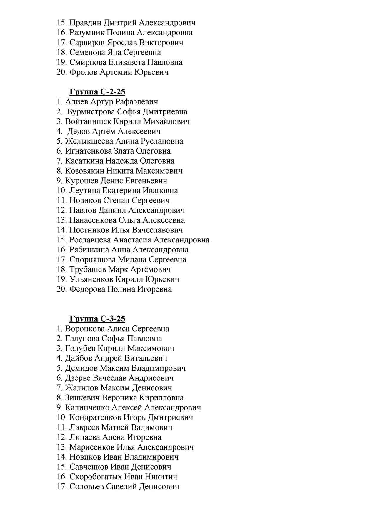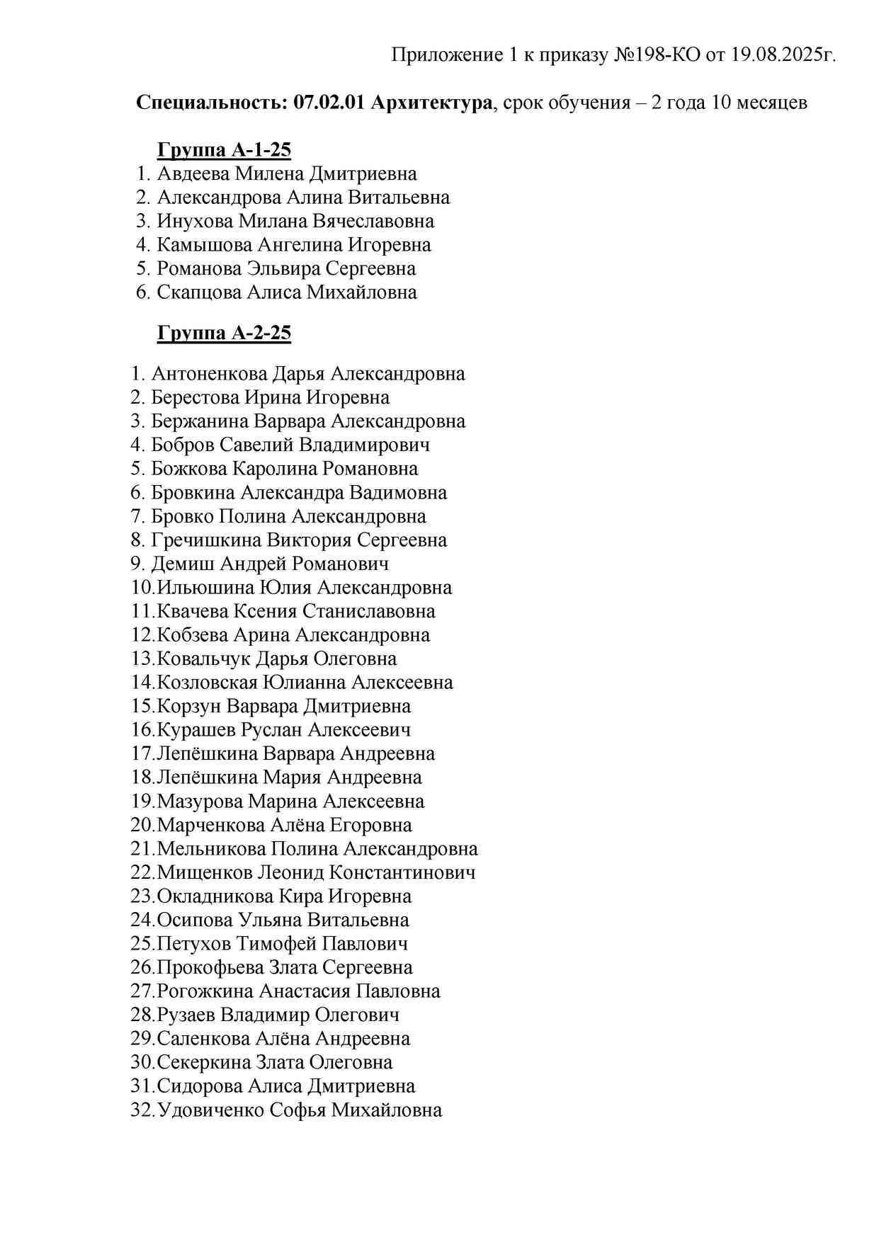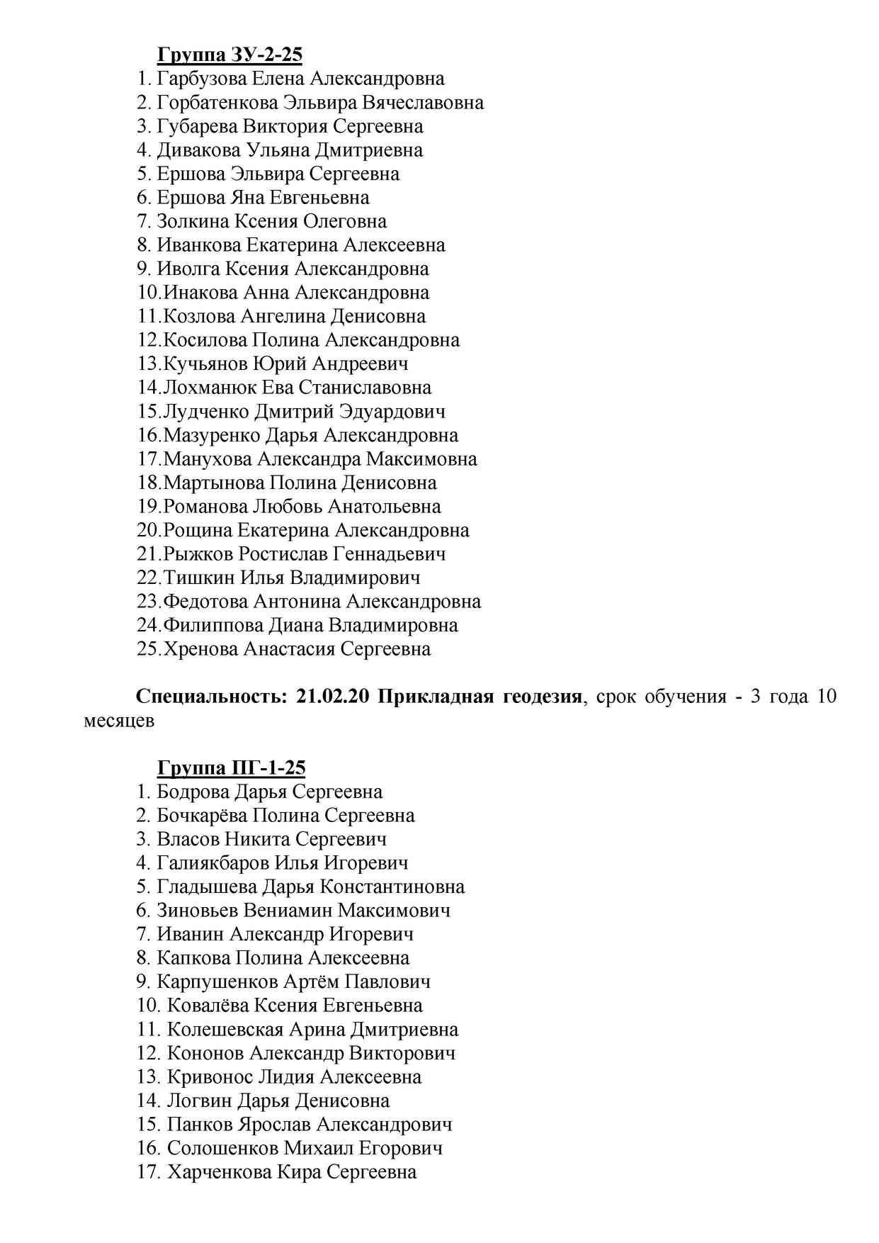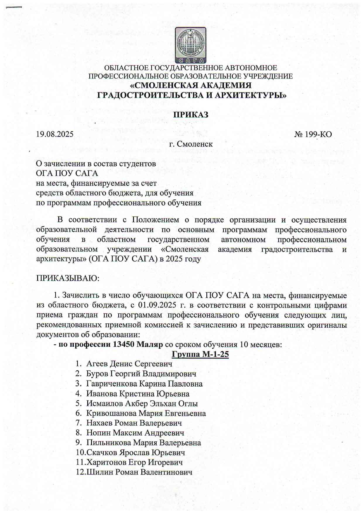 Списки зачисленных в состав студентов ОГА ПОУ САГА