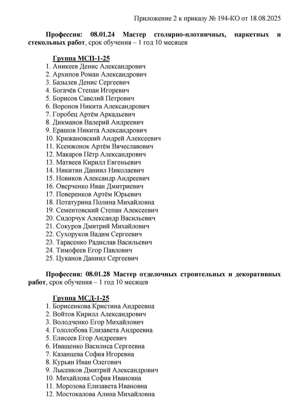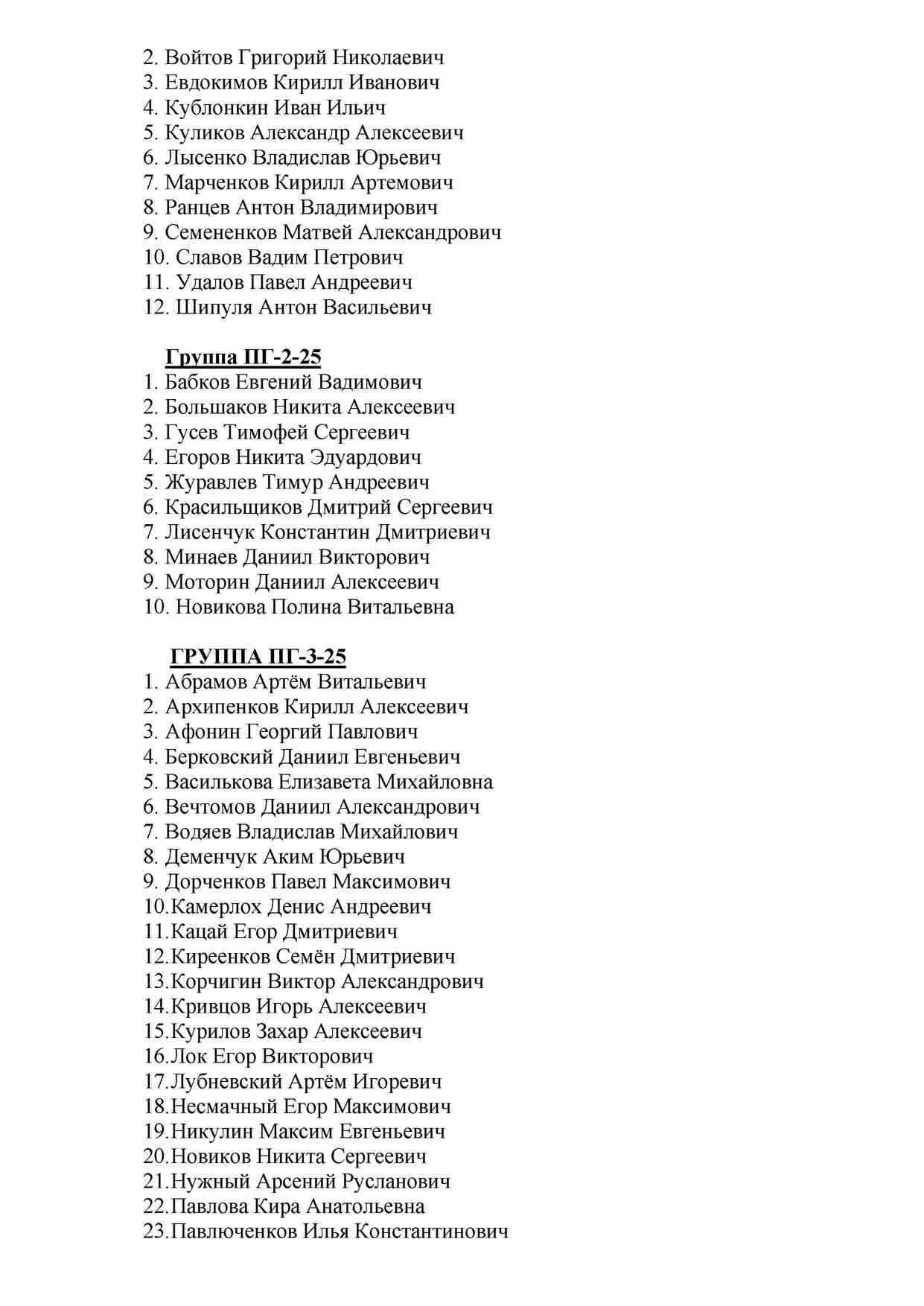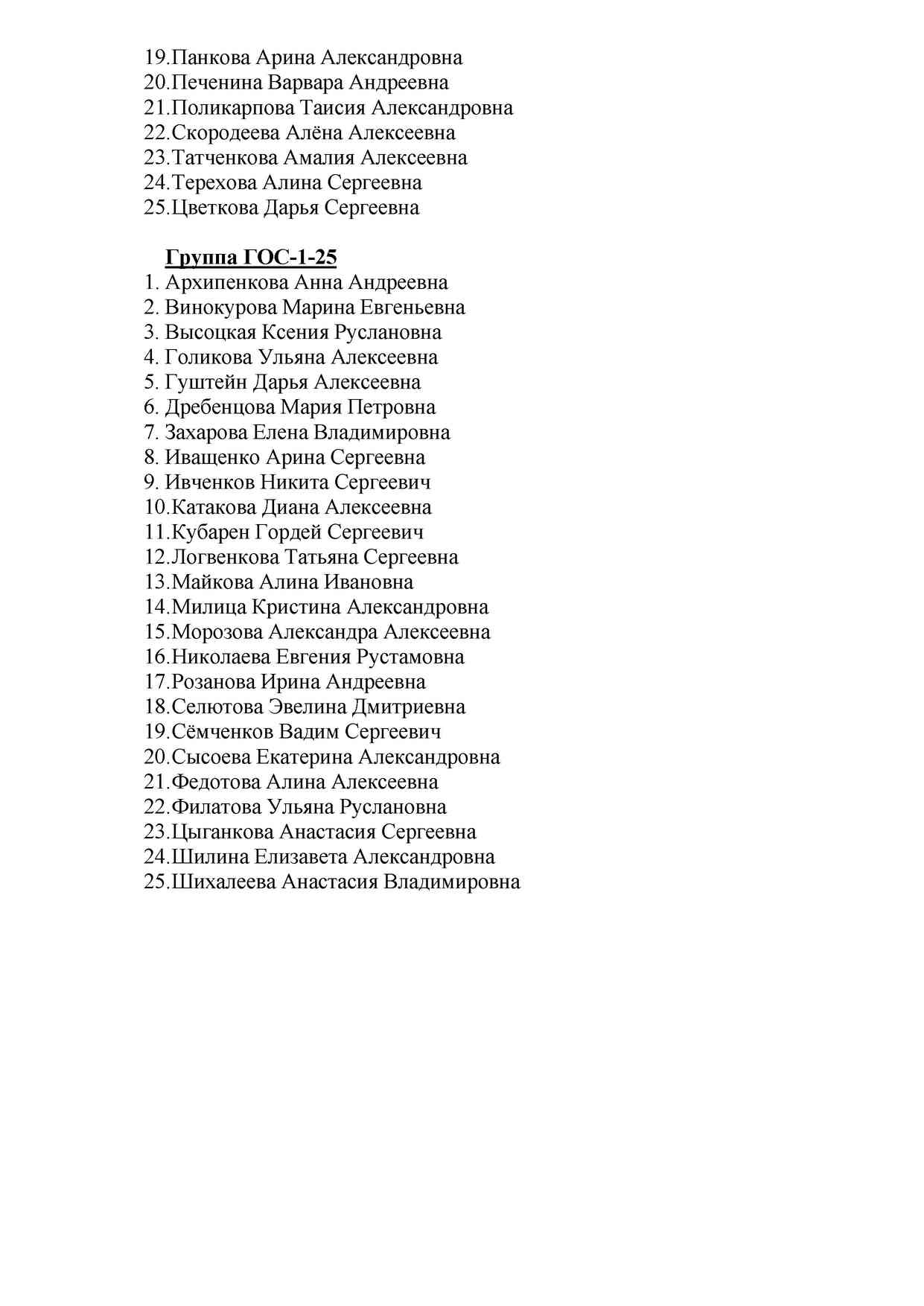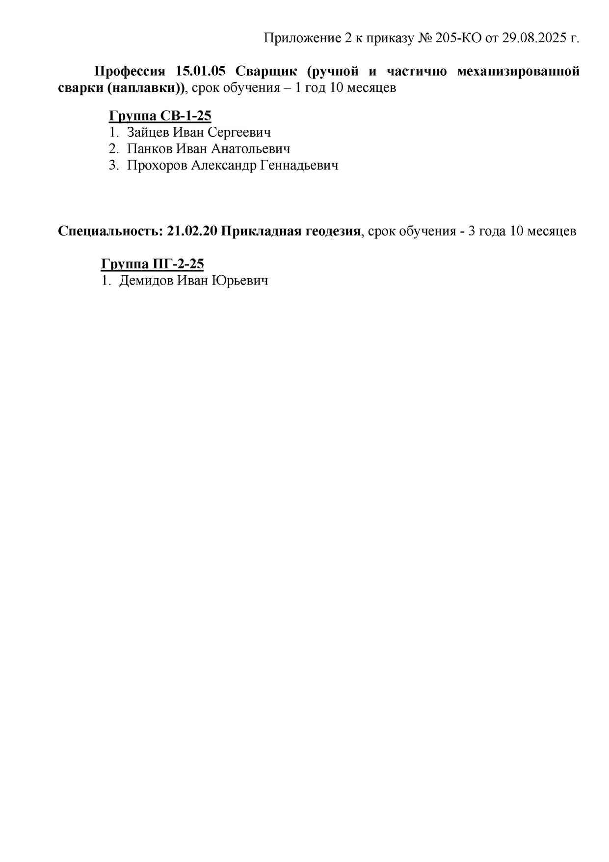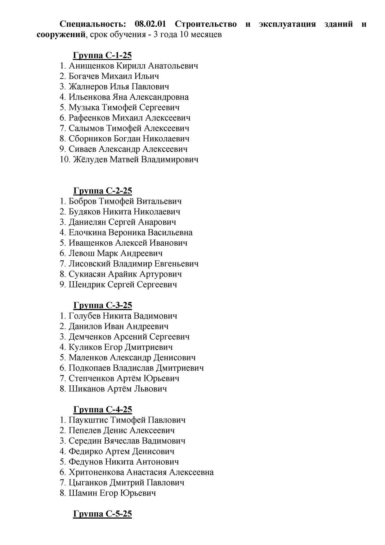 Списки зачисленных в состав студентов ОГА ПОУ САГА