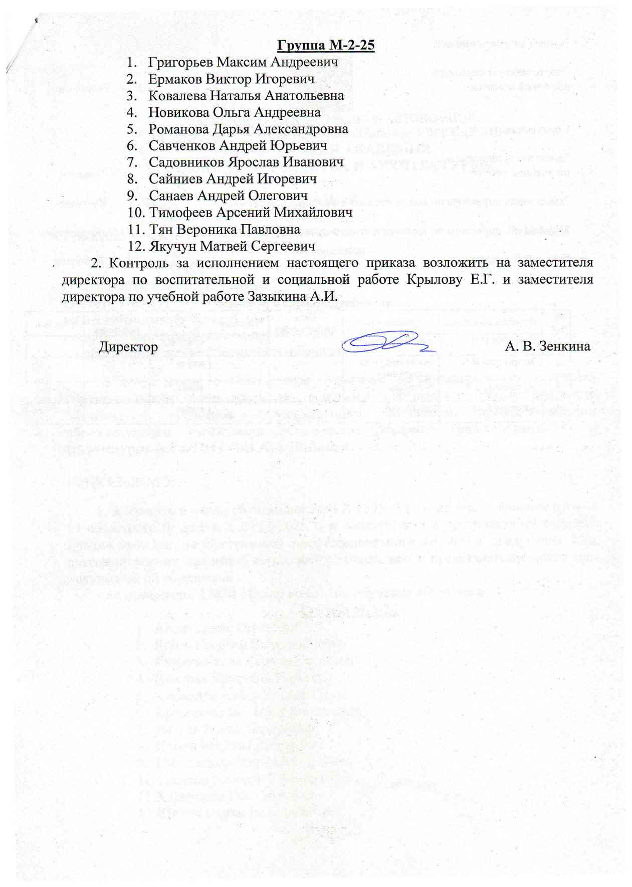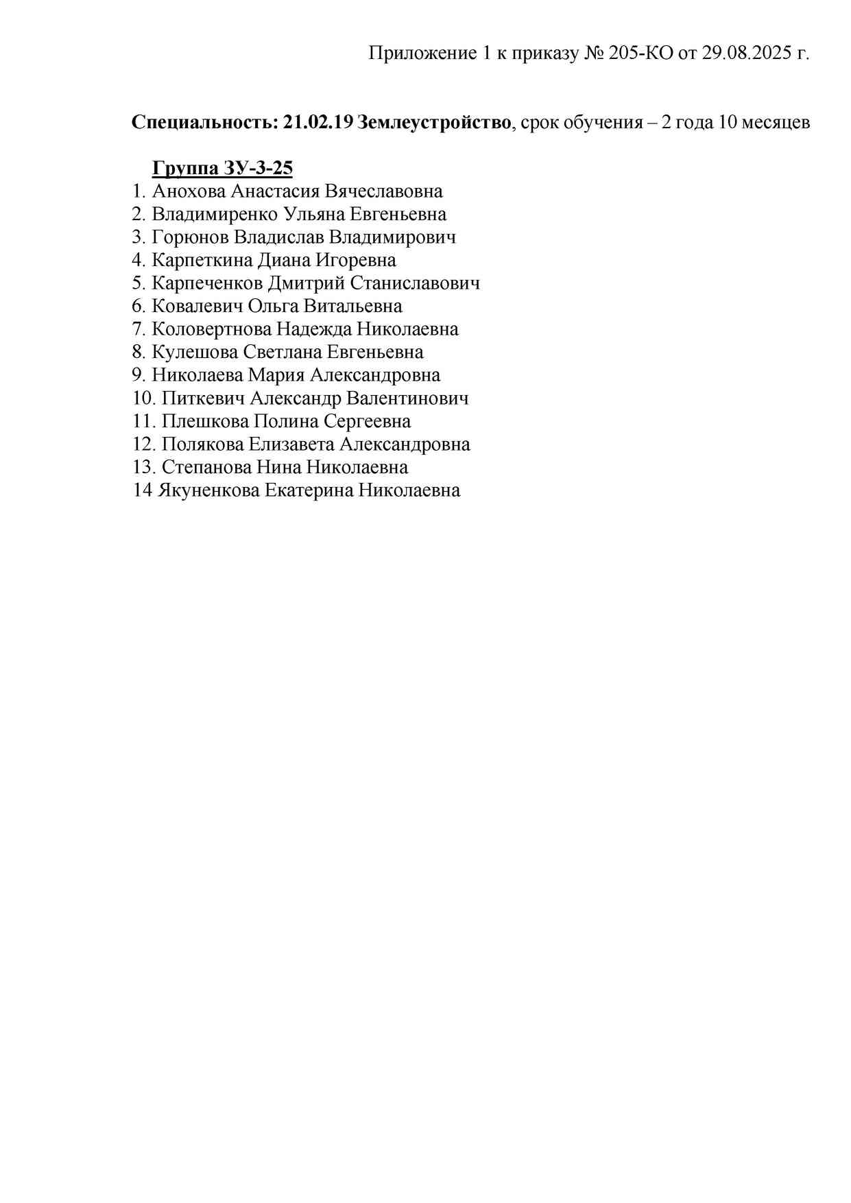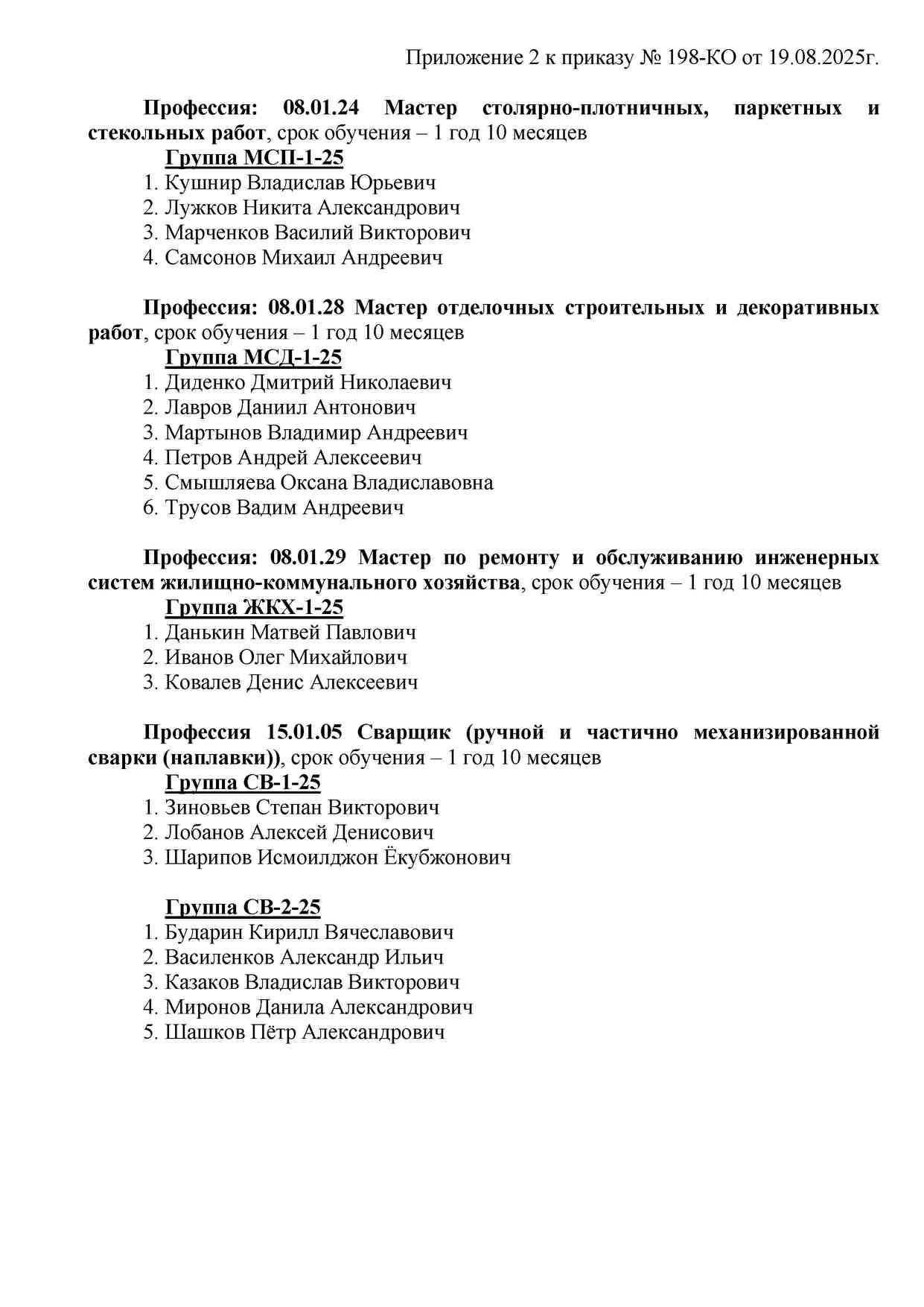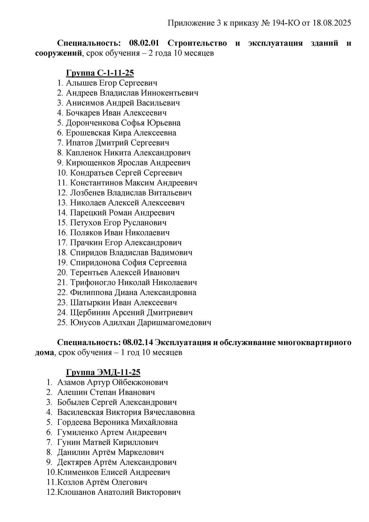 Списки зачисленных в состав студентов ОГА ПОУ САГА