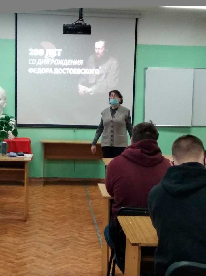 24 ноября в библиотеке колледжа прошло мероприятие, посвященное 200-летию со дня рождения Ф.М.Достоевского. Мероприятие подготовлено преподавателями русского языка и литературы В.И.Тимофеевой и О.А.Некоз. Ребятам была показана презентация о жизни и творчестве писателя, а также видеофрагменты по произведениям Достоевского.