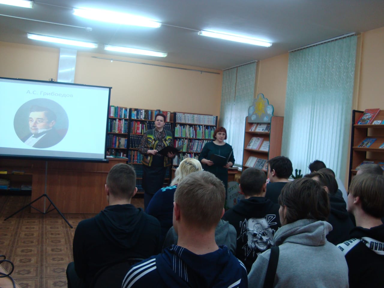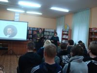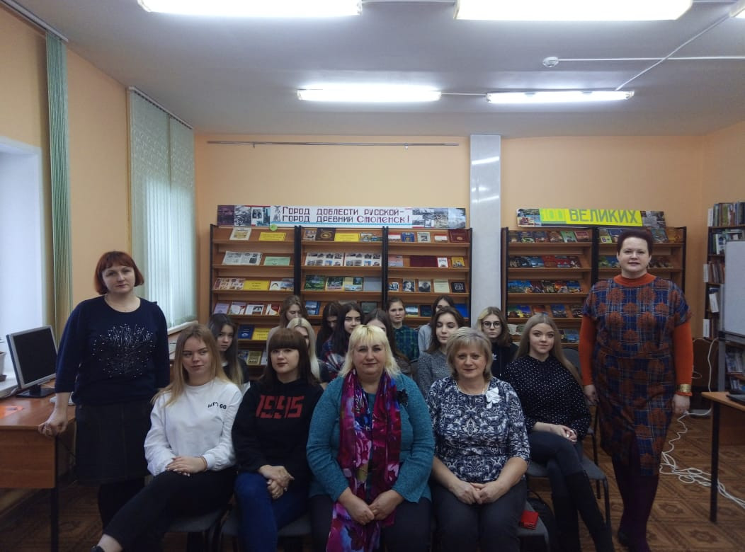 16 января в библиотеке 12, совместно со строительным колледжем, было проведено мероприятие посвященное 225 годовщине со дня рождения А.С.Грибоедова. Студенты узнали интересные факты его жизни и творчества, его связь со смоленщиной, услышали вальс Грибоедова, а затем с удовольствием отвечали на вопросы. Завершился праздник танцевальным флешмобом.