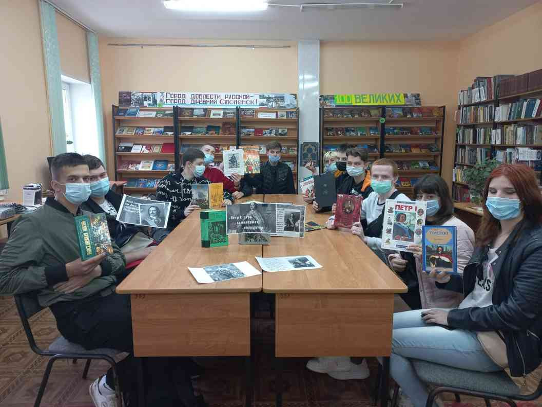 Студенты Смоленского строительного колледжа посетили мероприятие, посвященное 350-летию со дня рождения первого российского императора Петра I, которое прошло в Детской библиотеке №12. Студенты группы МС-1-20 под руководством классного руководителя и преподавателя истории Бочкаревой Е.М. с удовольствием вспомнили страницы истории петровского времени, просмотрели документальные кадры, художественные эпизоды из фильмов о Петре Великом. Юноши и девушки узнали о многообразии реформ императора, касающихся военной и гражданской сферы. Участники мероприятия делились своими соображениями по вопросам деятельности Петра Великого, определяли ее положительные и отрицательные стороны.