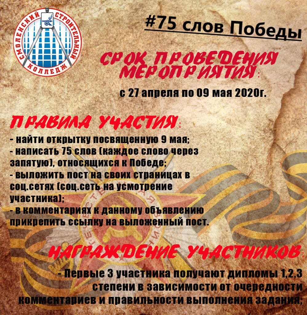 С 28 апреля по 09 мая конкурс 75 слов Великой Победы.
