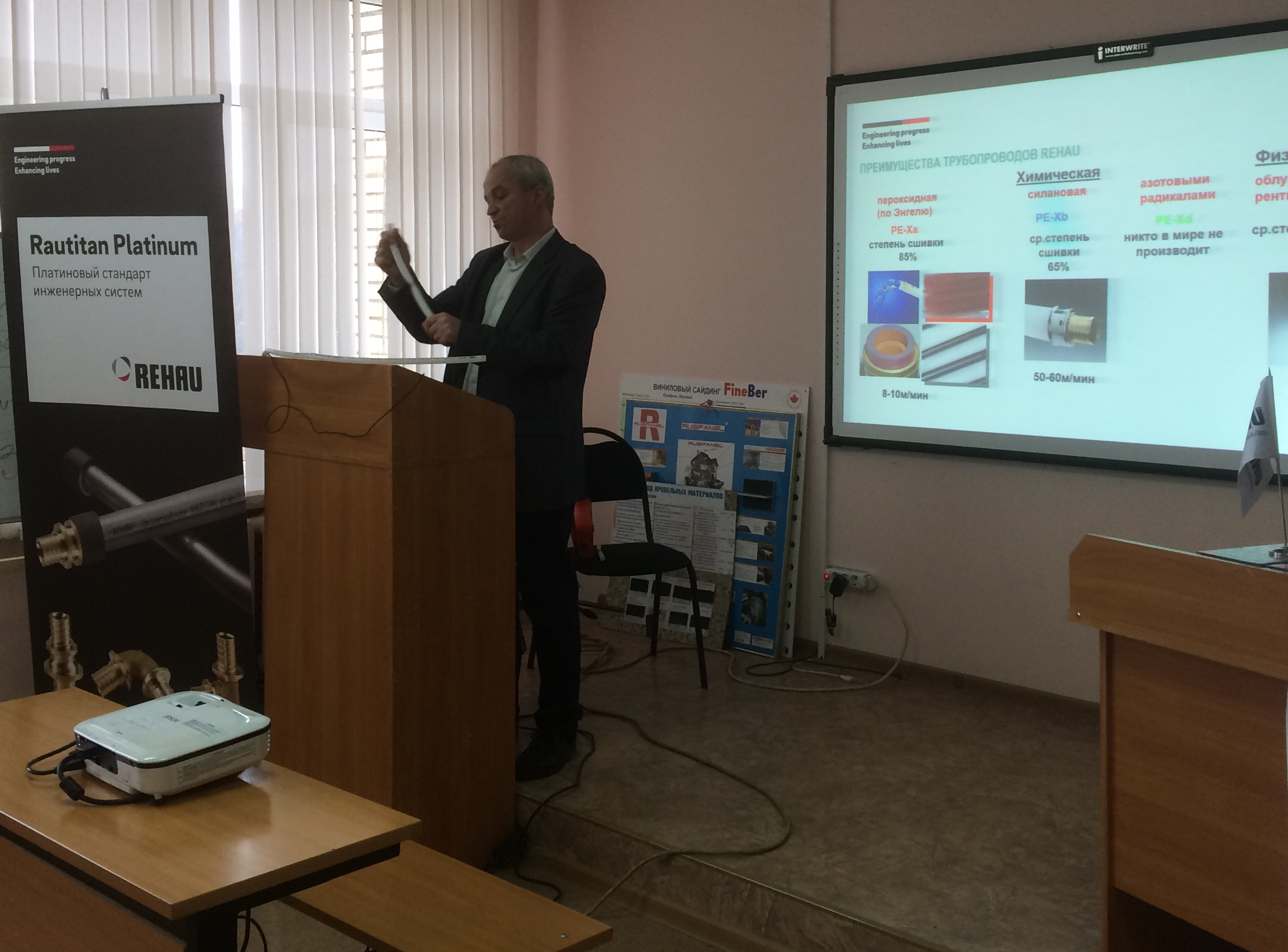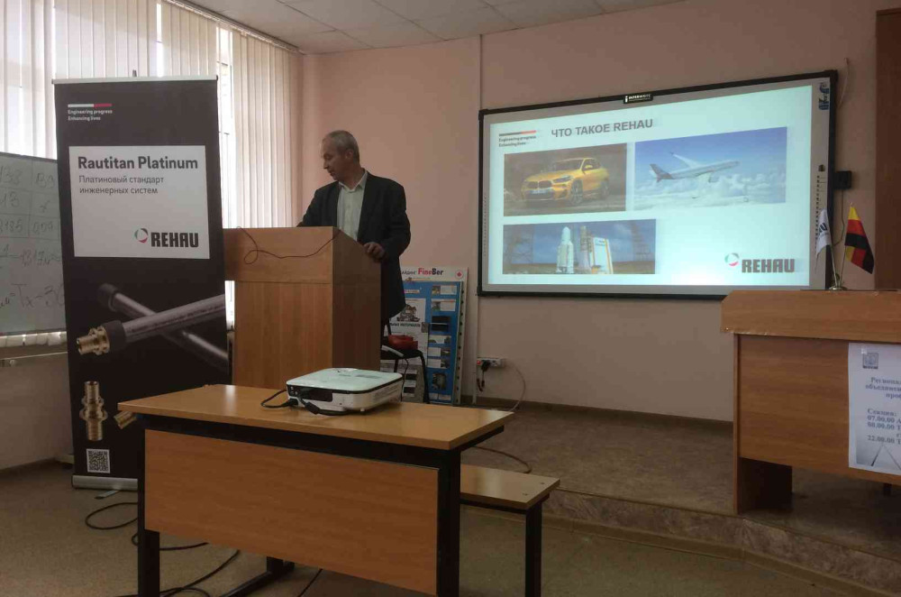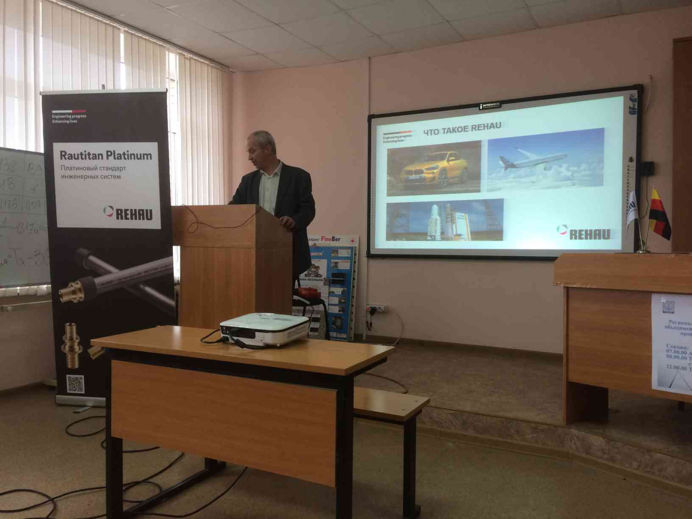 28.11.2019 г. в рамках деятельности региональной инновационной сети профессиональных образовательных организаций по направлению «Строительство», специализированного центра компетенций по компетенции «Сантехника и отопление» на базе ОГБПОУ «Смоленский строительный колледж» для реализации процесса подготовки кадров по ТОП-50, в соответствии с современными стандартами и передовыми технологиями, ведущим специалистом проектов Инженерные системы ООО REHAU г. Москва был проведен обучающий семинар на тему: «Инновационные материалы, технологии и современные требования в инженерных системах здания». А также мастер-класс на тему: «Применение новых технологий и современных решений в строительстве». В работе приняли участие преподаватели, мастера производственного обучения Смоленского строительного колледжа, Верхнеднепровского технологического техникума, Рославльского многопрофильного колледжа, представители предприятий строительной отрасли г. Смоленска, а также студенты Смоленского строительного колледжа очного отделения групп: МТ-1-16, МГ-1-16, ЗОУ-1-17 и студенты заочного отделения групп: УМДЗ-1-8, СДЗ-1-16. Организация проведения данного мероприятия была осуществлена заведующей заочным отделением Носенко Л.Н. Участники семинара смогли познакомиться с инновационными материалами, технологиями используемые для промышленных и гражданских зданий, с возможностями по оптимизации инженерных систем зданий, современными требованиями предъявляемыми в системах инженерно-технического обеспечения, а также лично поучаствовать в мастер-классе, применяя в экспериментальной работе современные санитарно-технические материалы и оборудование. Участники семинара получили именные свидетельства от компании REHAU.