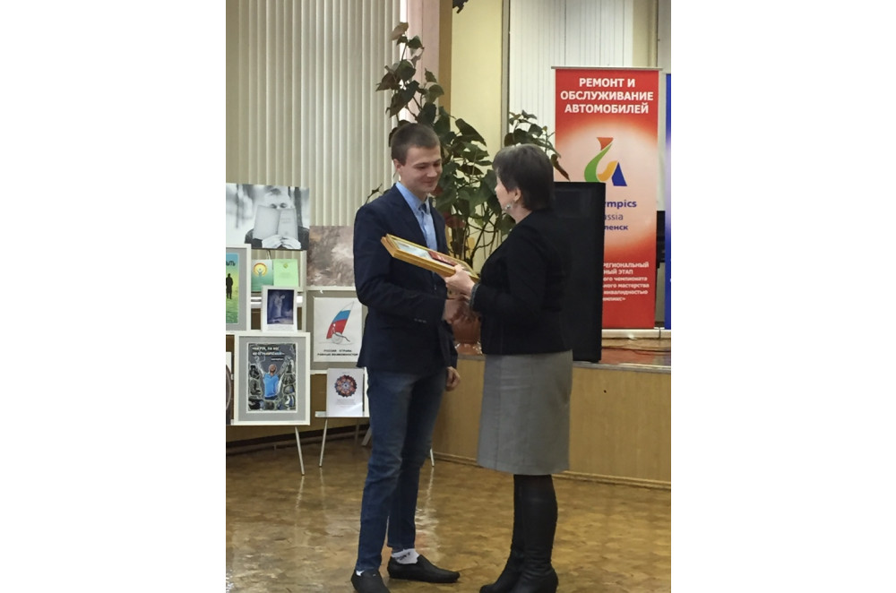 Победителю регионального отборочного этапа II Национального чемпионата профессионального мастерства среди людей с инвалидностью «Абилимпикс» Смоленской области (1 место) и II Национального чемпионата по профессиональному мастерству среди людей с инвалидностью «АБИЛИМПИКС-2016» (3 место) по компетенции «Малярное дело» обучающемуся ОГБПОУ «Смоленский строительный колледж» Стрелкову Игорю Владимировичу, который принес в копилку Смоленской области бронзовую медаль (под руководством мастера производственного обучения Черняк Натальи Николаевны), был вручен диплом II Национального чемпионата профессионального мастерства среди людей с инвалидностью «Абилимпикс-2016» и благодарственное письмо от заместителя Губернатора Смоленской области О.В. Лобода.