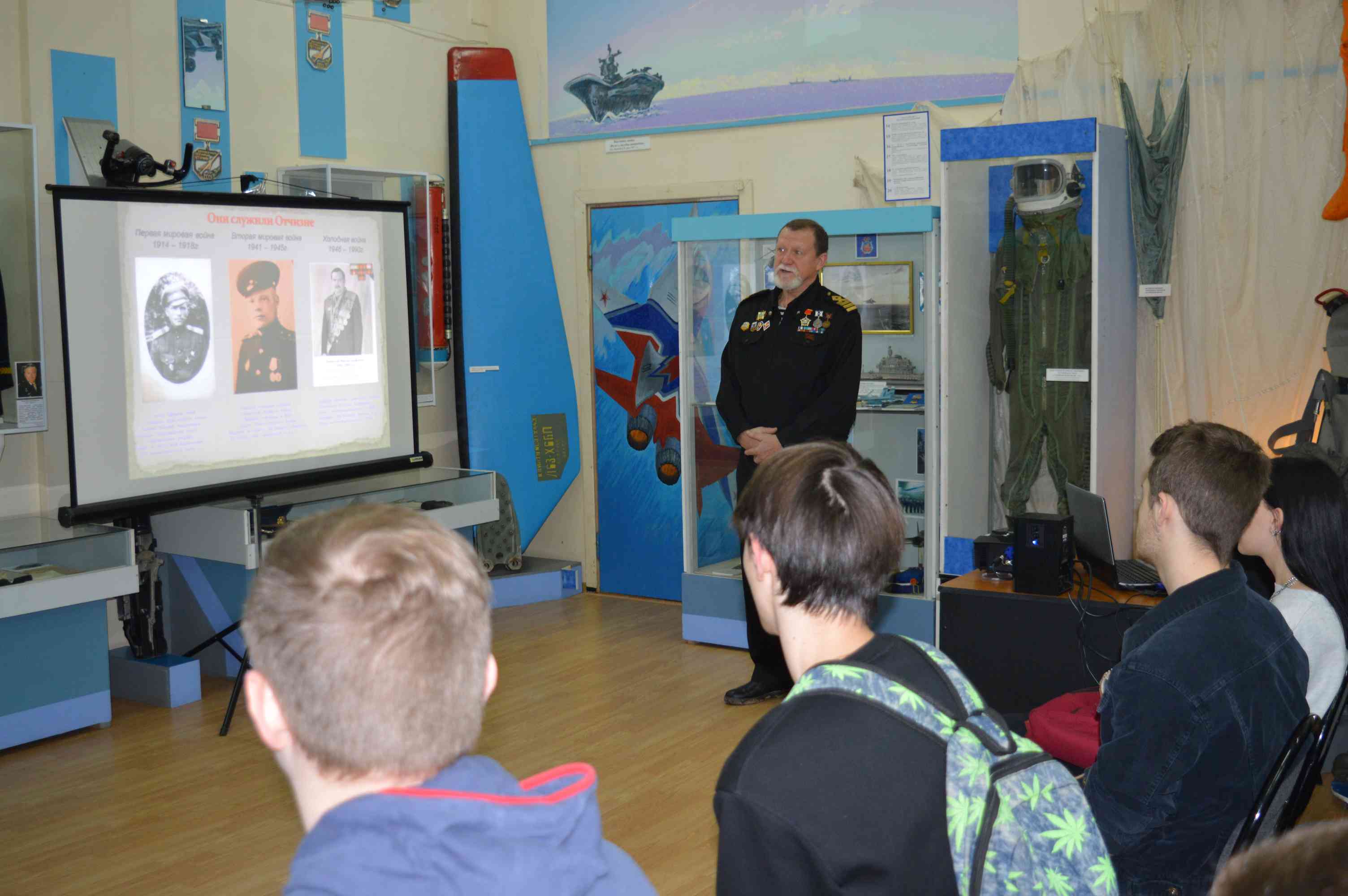 Смоленский строительный колледж совместно с молодежным центром-музеем им П.С. Нахимова провели мероприятие ко Дню Героев Отечества. Этот день посвящен тем ,кто своим мужеством заслужил звание Героя России, Героя Советского Союза, статус Георгиевского кавалера или кавалера ордена Славы. В молодёжном центре была проведена экскурсия по музею, зачем состоялась встреча с ветераном Военно-морского флота Терентьевым Александром Арефьевичем, который рассказал о героической судьбе своего деда и отца, которые принимали участие в различных воинах. Студенты Чигрина Жанна (группа ГД-1-17),подготовили презентацию о героях-выпускниках Смоленского строительного колледжа, которые участвовали в Афганской и Чеченской воинах. Завершилось мероприятие минутой молчания.
