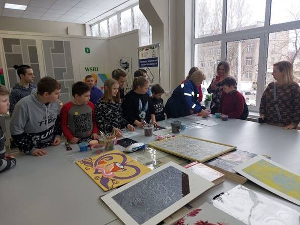 Преподаватели и мастера производственного обучения организовали на площадках мастерских Смоленского строительного колледжа экскурсию для учащихся средней школы № 9 г. Смоленска. Школьники работали с жидкими обоями, выкладывали картины из кусочков плиток, собирали табуретки и рамы для окон, познакомились с программой, с помощью которой проектируются дома и посмотрели, как учатся студенты. Каждый получил в подарок картину, сделанную собственными руками!
