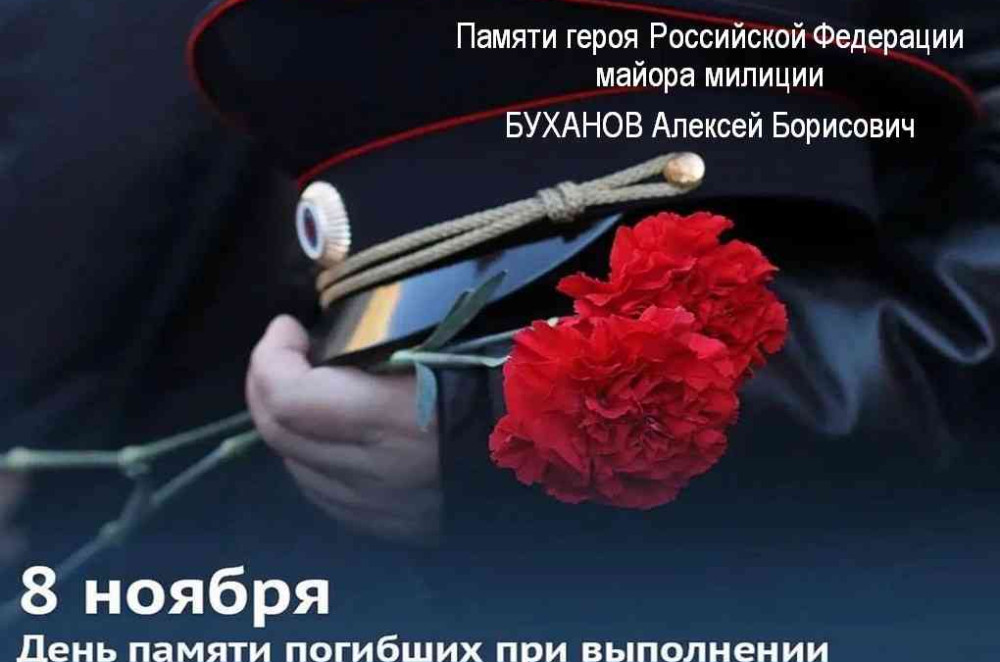 8 ноября отмечается День памяти погибших при исполнении служебных обязанностей сотрудников органов внутренних дел России. Эта дата посвящена отдельной категории героев России сотрудникам полиции. В этот день по всей стране отдают дань уважения сотрудникам правоохранительных органов, которые ценой собственной жизни обеспечивали безопасность граждан России. От работы сотрудников полиции зависит соблюдение законности в жизни страны, порядок на улицах городов, покой в домах. Их жертва оставила семьи без отцов, матерей без сыновей, их героизм не забывается и высоко ценится обществом. Этот памятный день утверждён приказом министра внутренних дел России от 26 октября 2011 года.