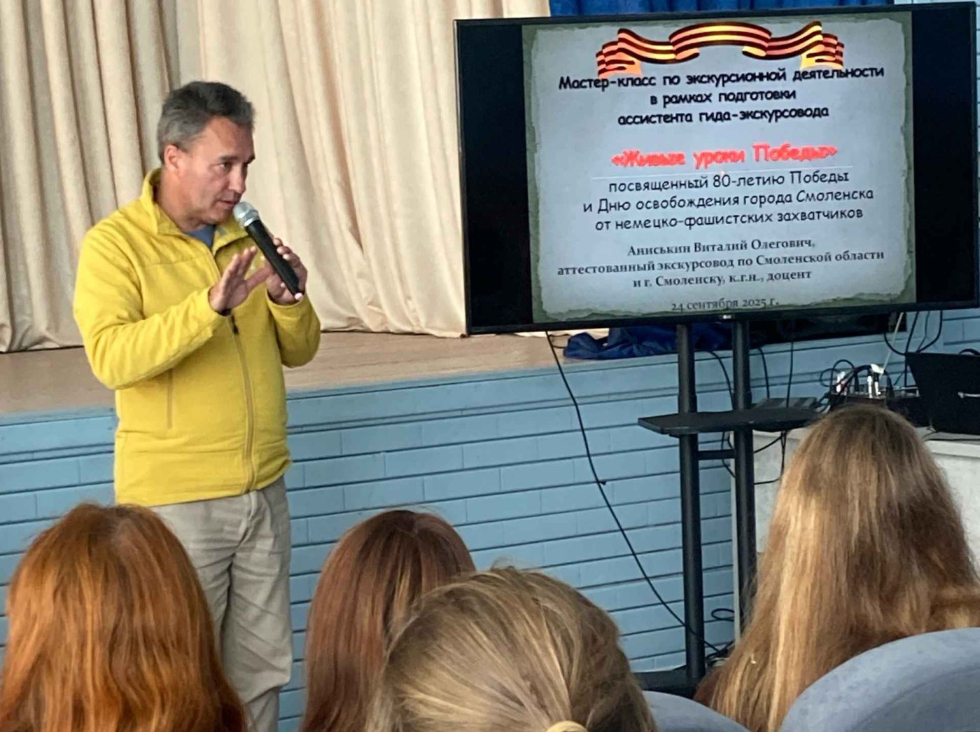 В Смоленской академии градостроительства и архитектуры для студентов специализации «Туризм и гостеприимство» состоялись два значимых образовательных события. В рамках патриотическо-познавательной акции Смоленского краеведческого общества кандидаты географических наук, доценты В.О. Аниськин и С.А. Щербакова организовали и провели мастер-класс по подготовке ассистента гида-экскурсовода и интерактивную лекцию «Живые уроки Победы».
