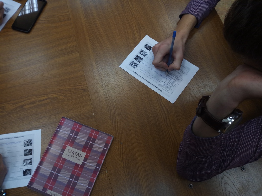 В рамках урока состоялась беседа, о том какие опасности могут встретиться в сети Интернет: о влиянии на человека сотового телефона, социальных сетей, о том насколько мы зависимых от современных гаджетов, информационных технологий. В конце занятия обучающиеся высказали своё мнение как устно, так и в форме анкеты, которое войдет в копилку общего студенческого мнения.