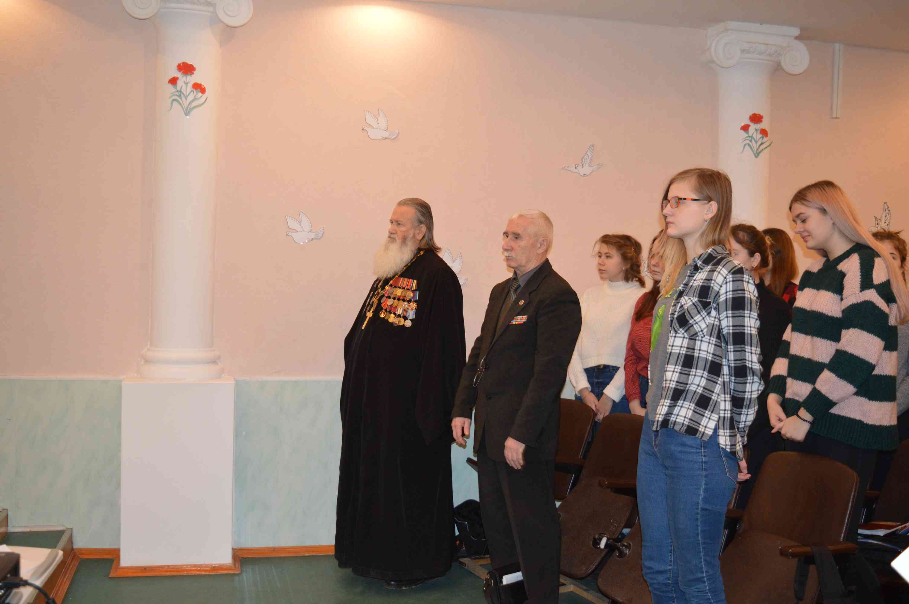 В память всех известных и не известных героев Отечества была объявлена минута памяти. Волонтеры колледжа Арантьев Андрей (гр. А-1-16), Макаров Даниил (гр. ГД-1-18), Алтынников Илья (гр. ГД-1-18) и Козлов Вадим (гр. ГД-1-18) возложили цветы к мемориальной доске Буханова А.Б, расположенной на здании колледжа и памятному знаку установленному в память о выпускниках колледжа, погибших в Афганской Войне.