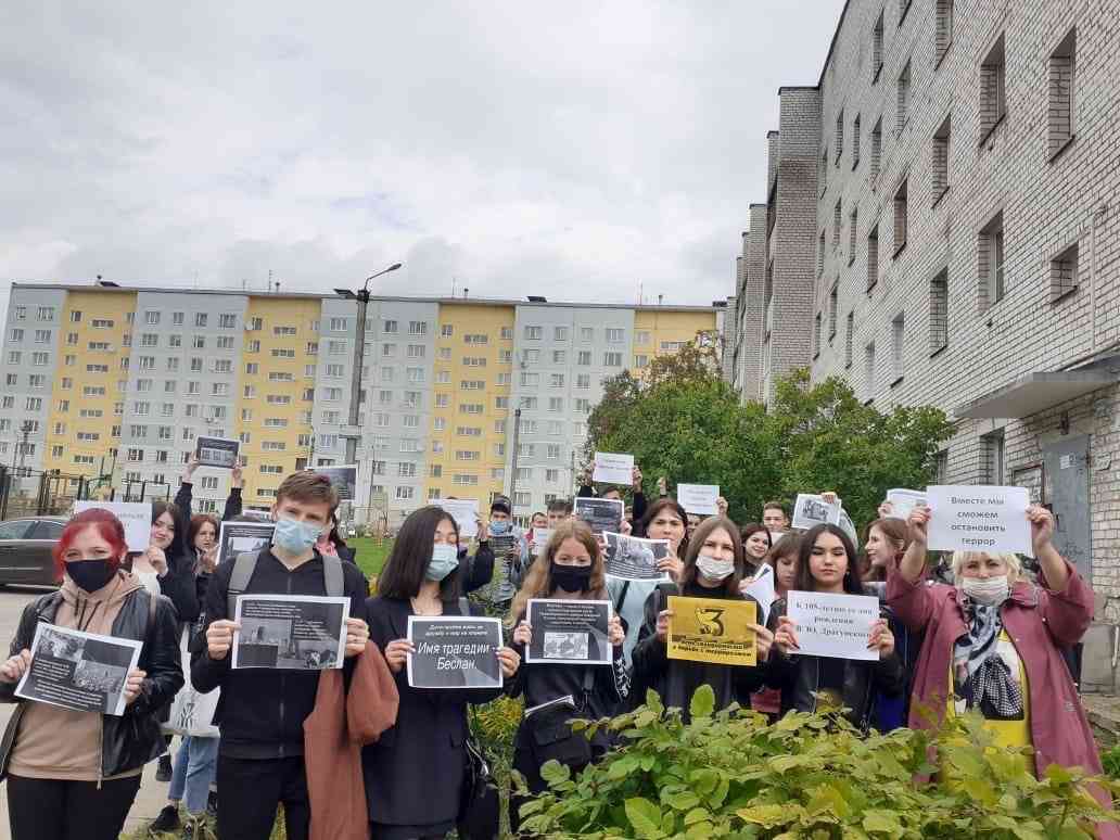 Студенты групп МС-1-20 и Т-1-20 Смоленского строительного колледжа под руководством преподавателя истории и обществознания Бочкаревой Е. М. приняли участие во флешмобе, посвященном памяти погибших при террористическом акте в городе Беслане.