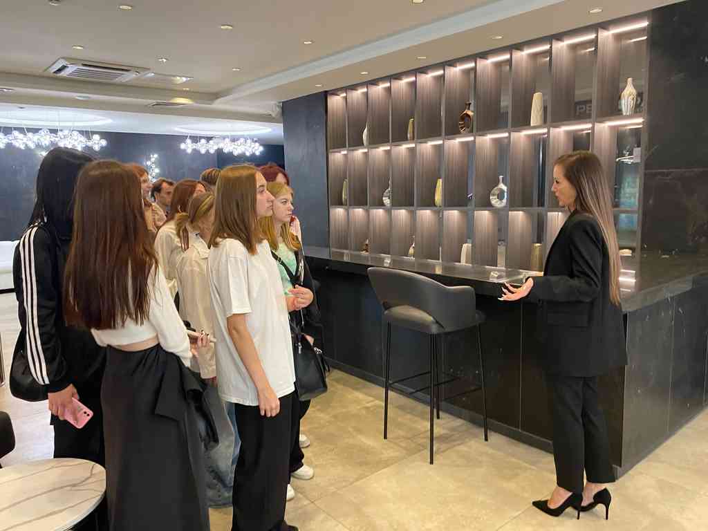 Старший администратор пятизвездночного отеля рассказала об истории отеля и показала самые интересные места. Так, обучающимся удалось посмотреть президентский и стандартные номера, зону SPA, конференц-зал. А самое главное, студентам показали сердце отеля - место, где кипит вся работа, скрытая от глаз гостей.