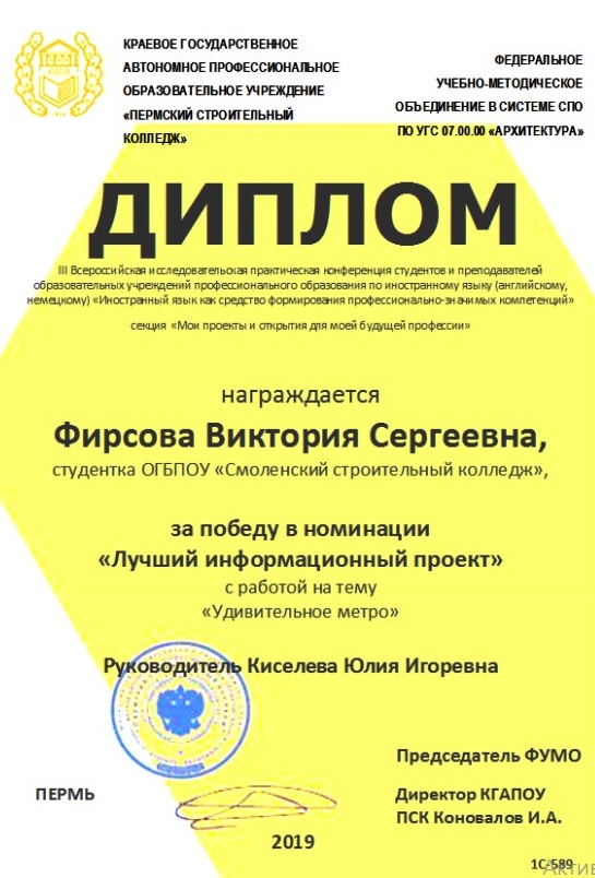 4. AMAZING SUBWAY («Удивительное метро» автор Фирсова Виктория Сергеевна (А-1-18) руководитель проекта Киселева Юлия Игоревна