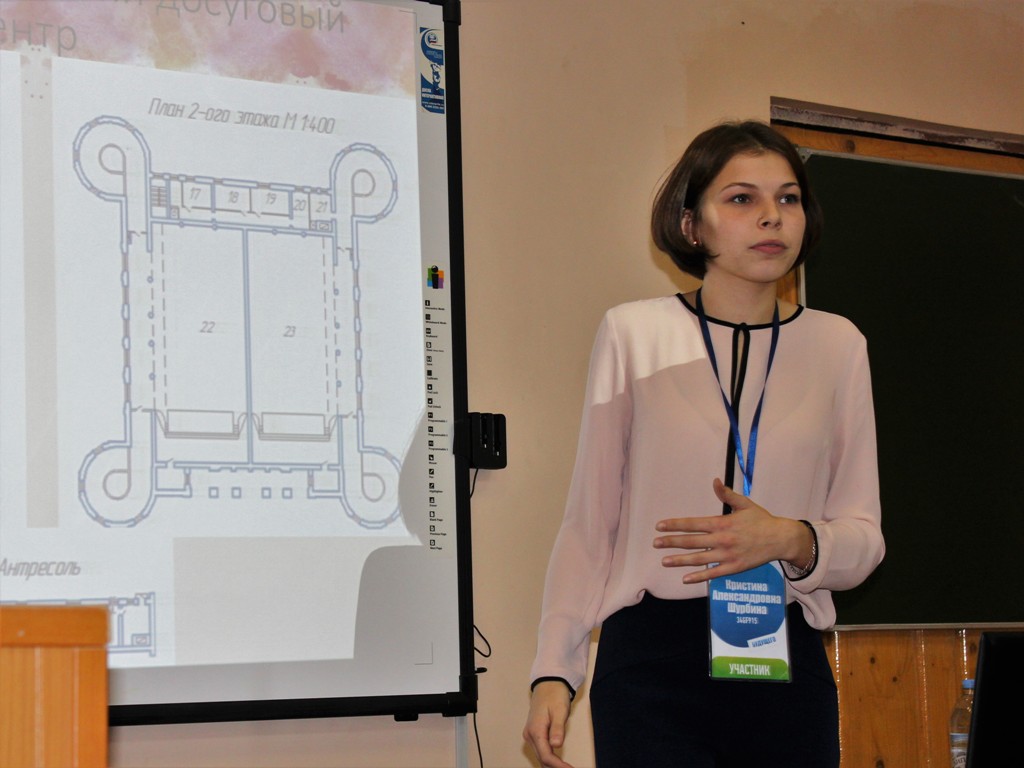 1. Шурбина Кристина представила проект «Новая жизнь кинотеатра «Октябрь» г. Смоленск (реконструкция кинотеатра и создание многофункционального досугового центра)», в котором предлагается возродить памятник градостроительства и архитектуры города, его прямое функциональное назначение, а также включить объект в экскурсионную структуру Смоленска (руководитель проекта Фирсова Ж.В.).