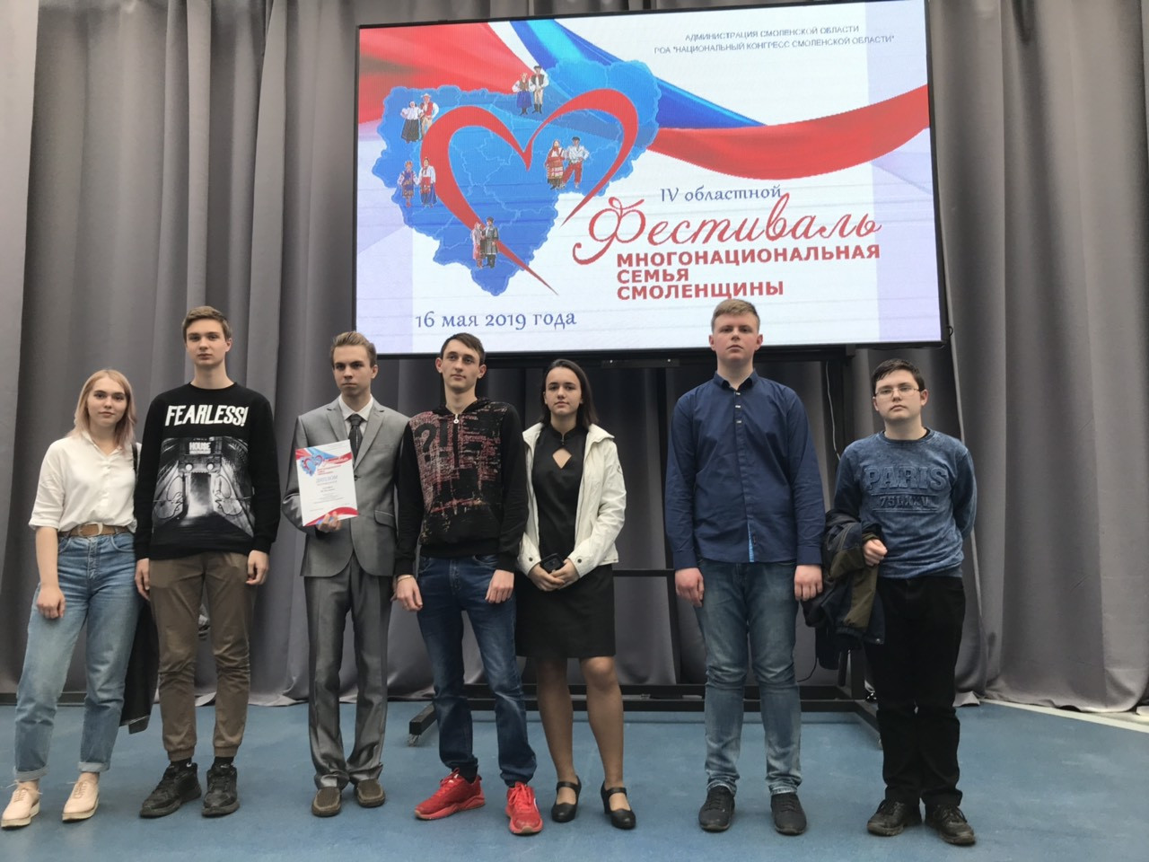 16 мая 2019 года студенты Смоленского строительного колледжа (группы МГ-1-18 и СУ-3-18) под руководством преподавателя русского языка и литературы Василенко Е.В. посетили IV Областной фестиваль «Многонациональная семья Смоленщины».