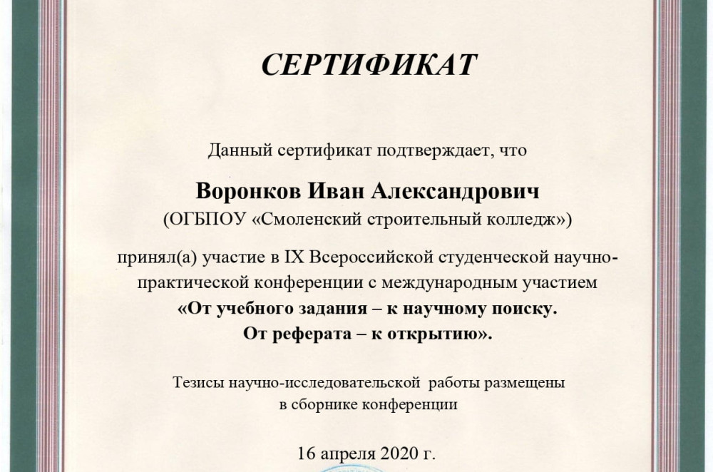 ОГБПОУ «Смоленский строительный колледж» принял участие в конференции и представил несколько работ: