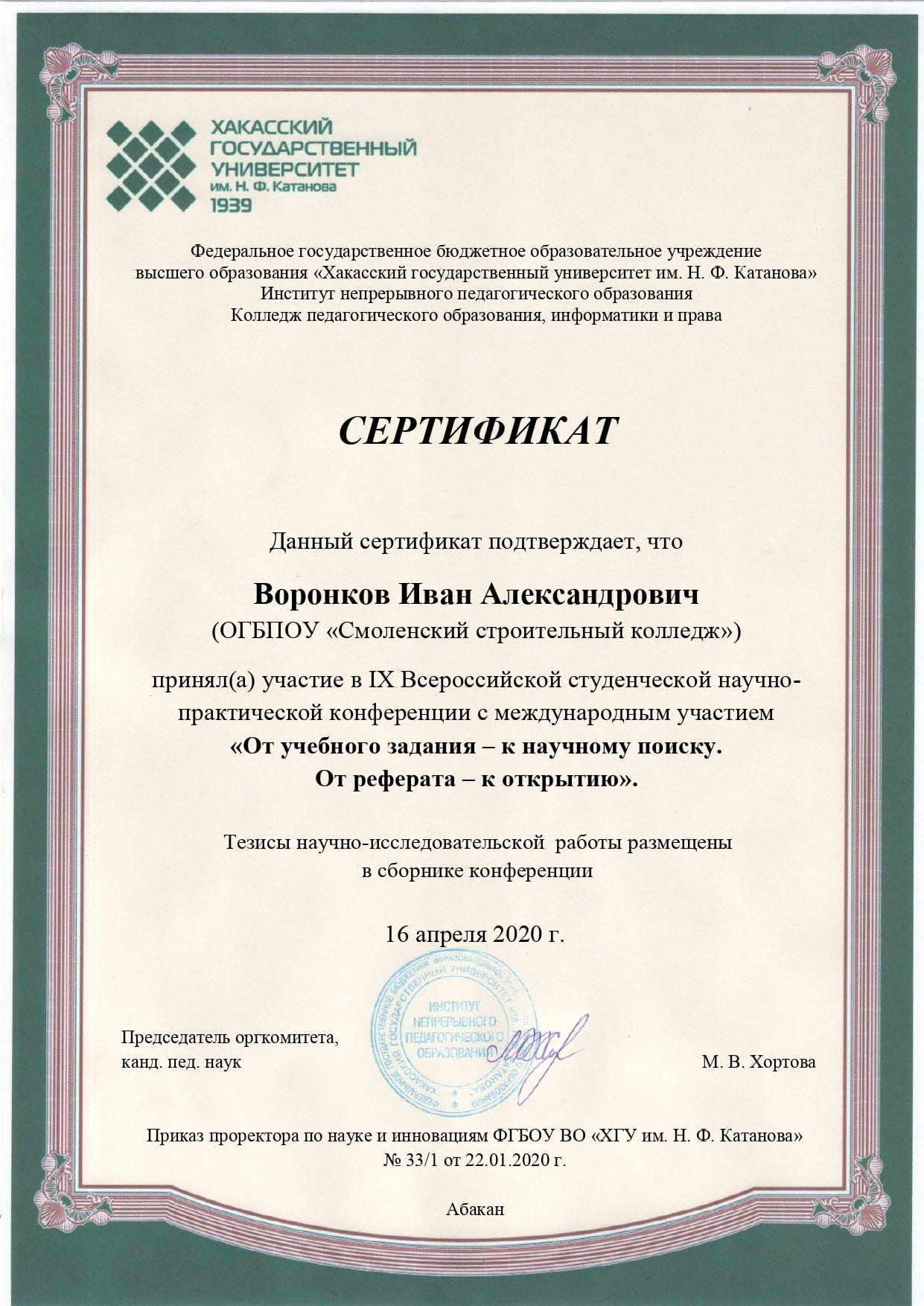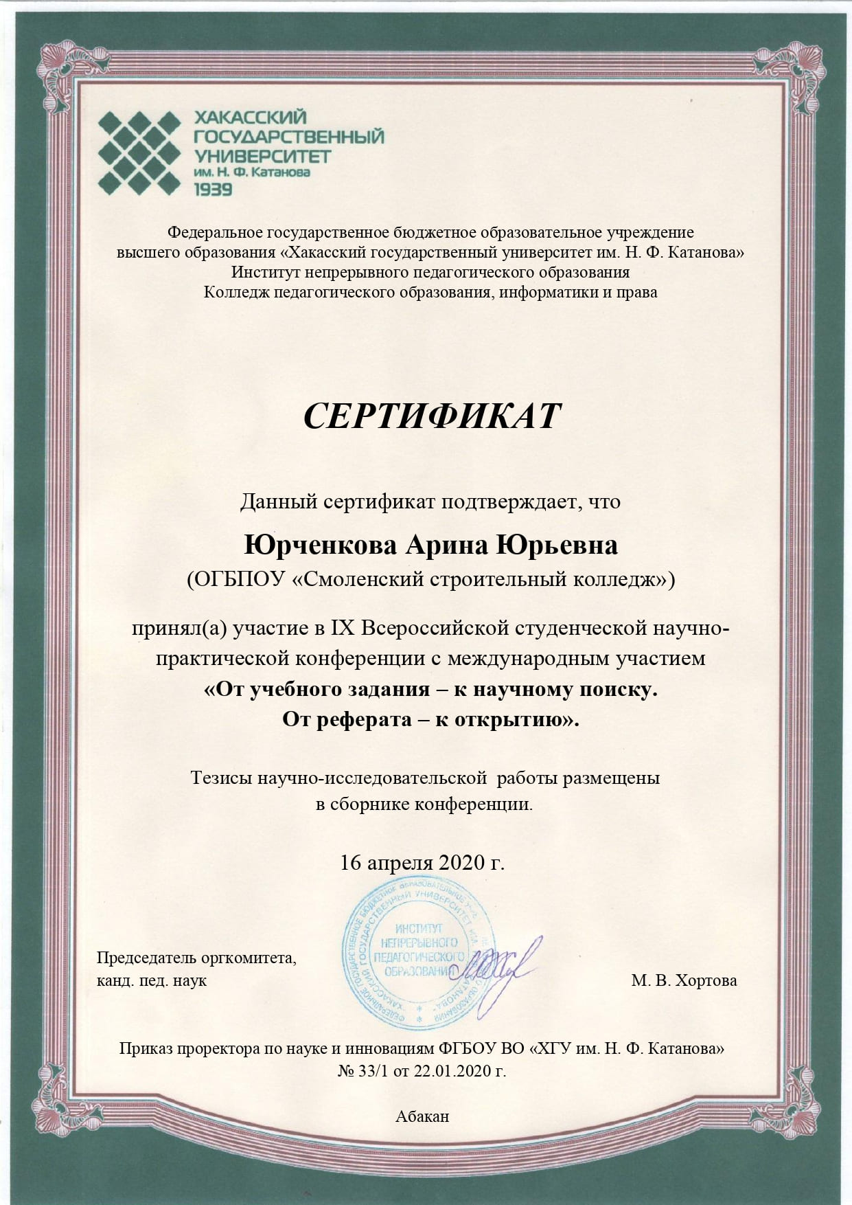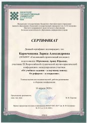 IX Всероссийская студенческая научно-практическая конференция с международным участием «От учебного задания – к научному поиску. От реферата – к открытию»