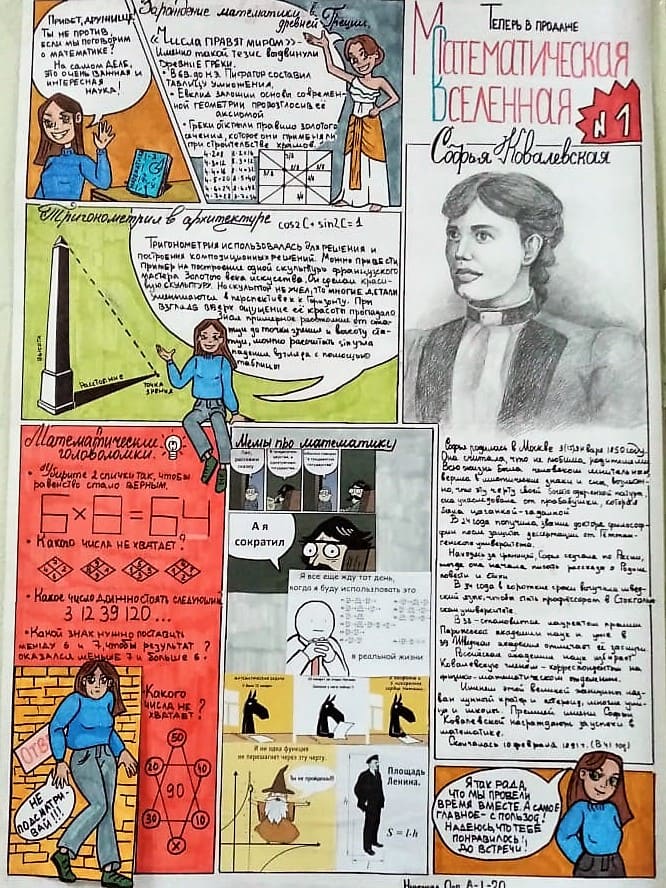 Одна из тем газет –посвящение первой в мире женщины – профессора математики, выдающегося русского ученого Софье Васильевне Ковалевской, 170 лет со дня рождения которой отмечалось в 2020 году.
