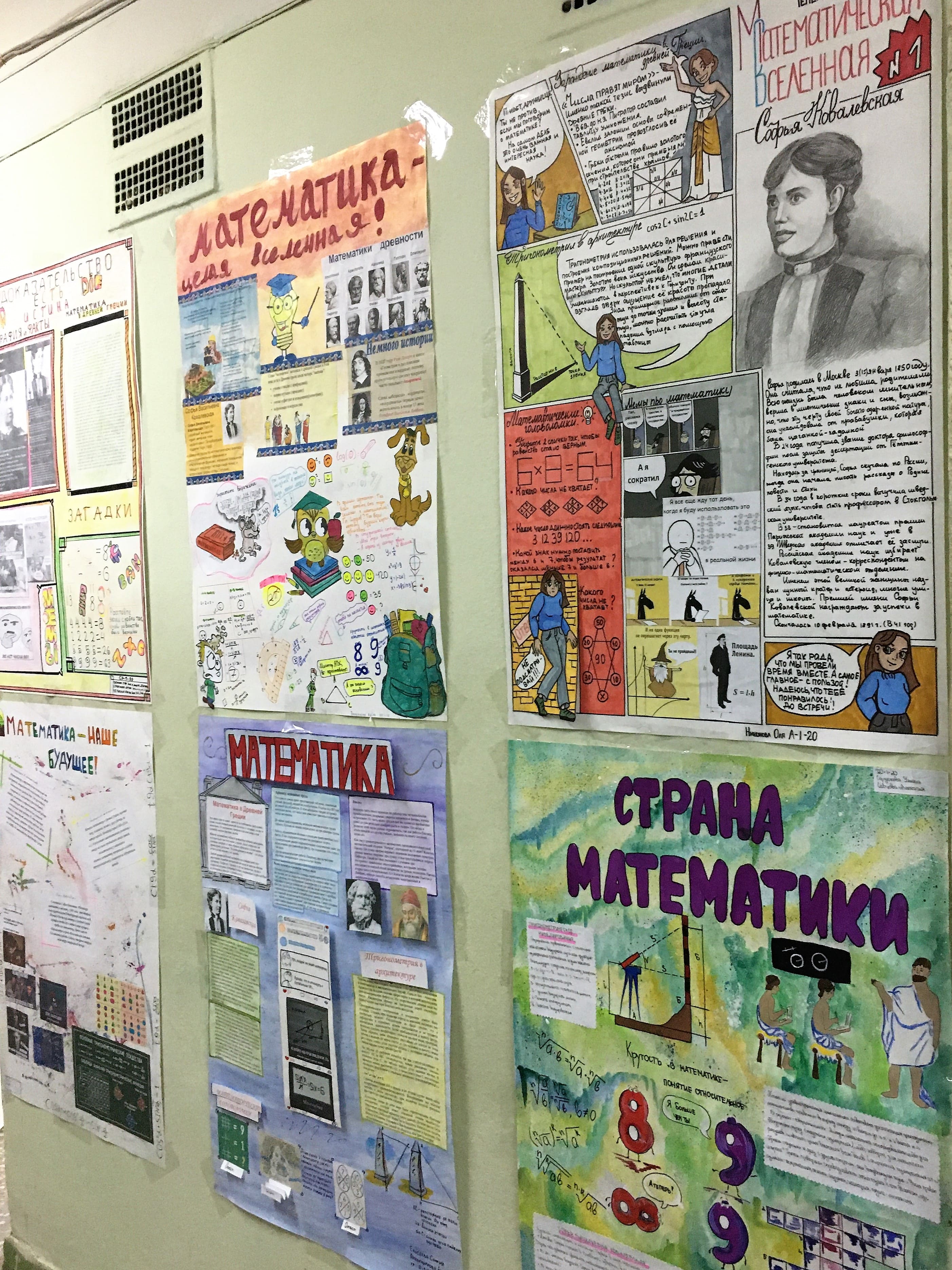 В этом году на него было представлено восемьдесят три (83!) газеты и коллажа. Свои работы на конкурс представили обучающие первых курсов, которые представили свой взгляд на математику. Тематика газет и коллажей разнообразна: можно путешествовать по карте мира и познакомиться с выдающимися математиками и их открытиями, узнать интересные математические факты, вспомнить основные правила, теоремы из основного курса геометрии и алгебры, на досуге попытаться разгадать математические кроссворды и ребусы, узнать историю возникновения тригонометрии и ее роли с будущей профессии.