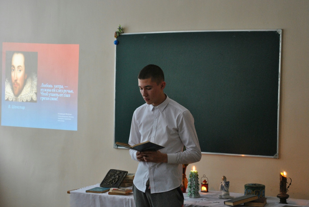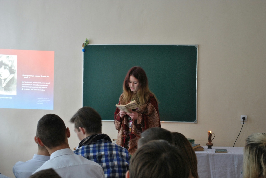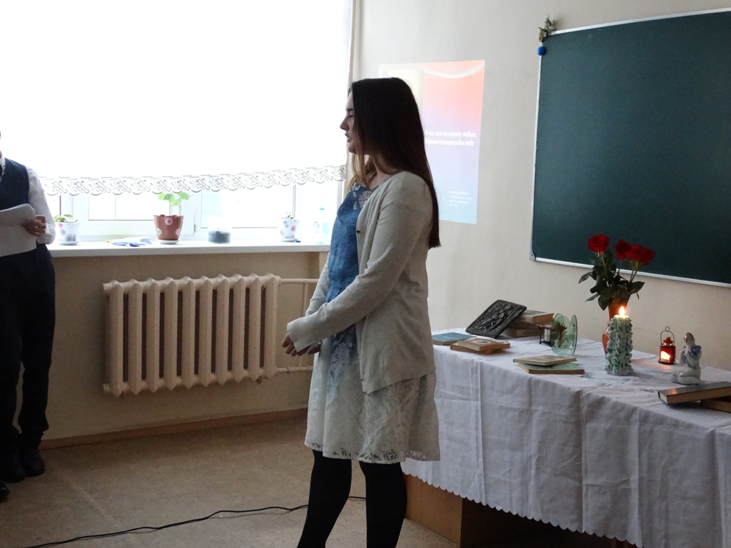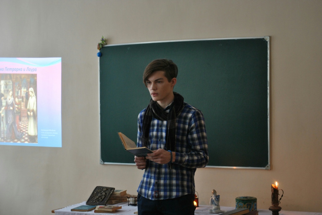 14 декабря на площадке №2 Смоленского строительного колледжа прошло мероприятие, объединившее творческих и талантливых студентов – литературная гостиная «Любовь – волшебная страна». Автором идеи и режиссером-постановщиком театрализованного вечера стала преподаватель литературы Марина Николаевна Беленко. Произведения великих русских и зарубежных поэтов звучали в исполнении студентов 1 курса, которые не только стремились передать чувства авторов стихотворений, но и выразить собственные ощущения, настроения и эмоции. Аккомпанементом к лирике звучала музыка, ребята смотрели отрывки из художественных фильмов и слушали записи авторского исполнения произведений. В литературном салоне царила особая атмосфера, и перед гостями одна за другой оживали известные истории любви: Петрарка и Лаура, Полина Виардо и Иван Тургенев, Сергей Есенин и Айседора Дункан, Лиля Брик и Владимир Маяковский, Марина Влади и Владимир Высоцкий.