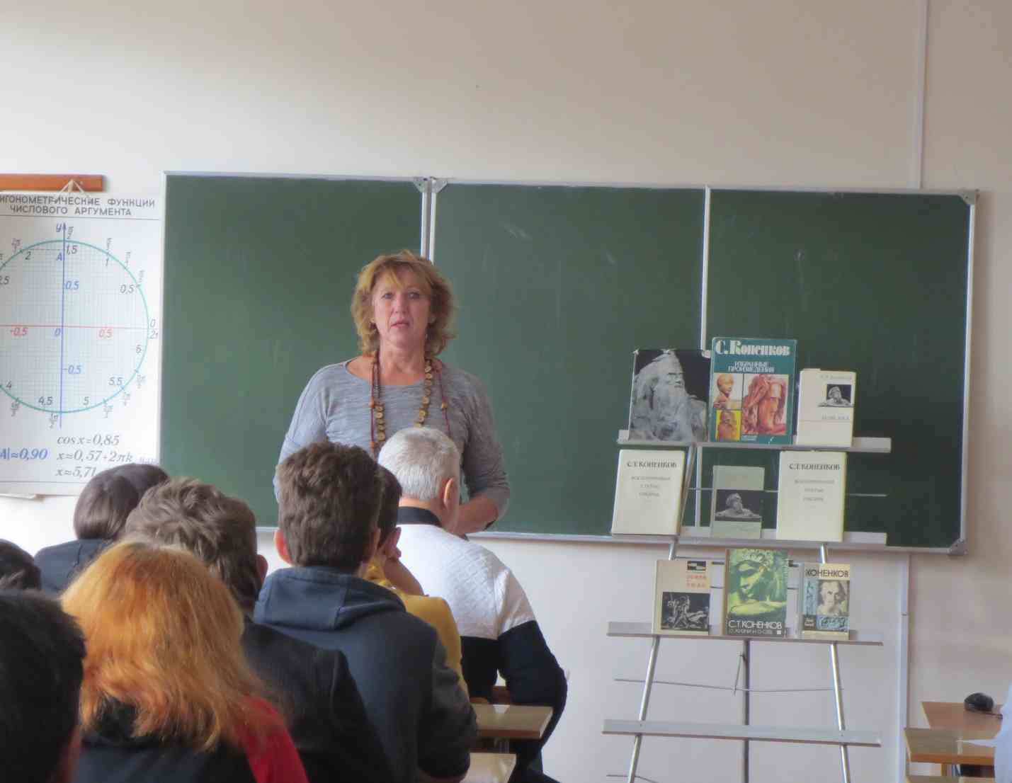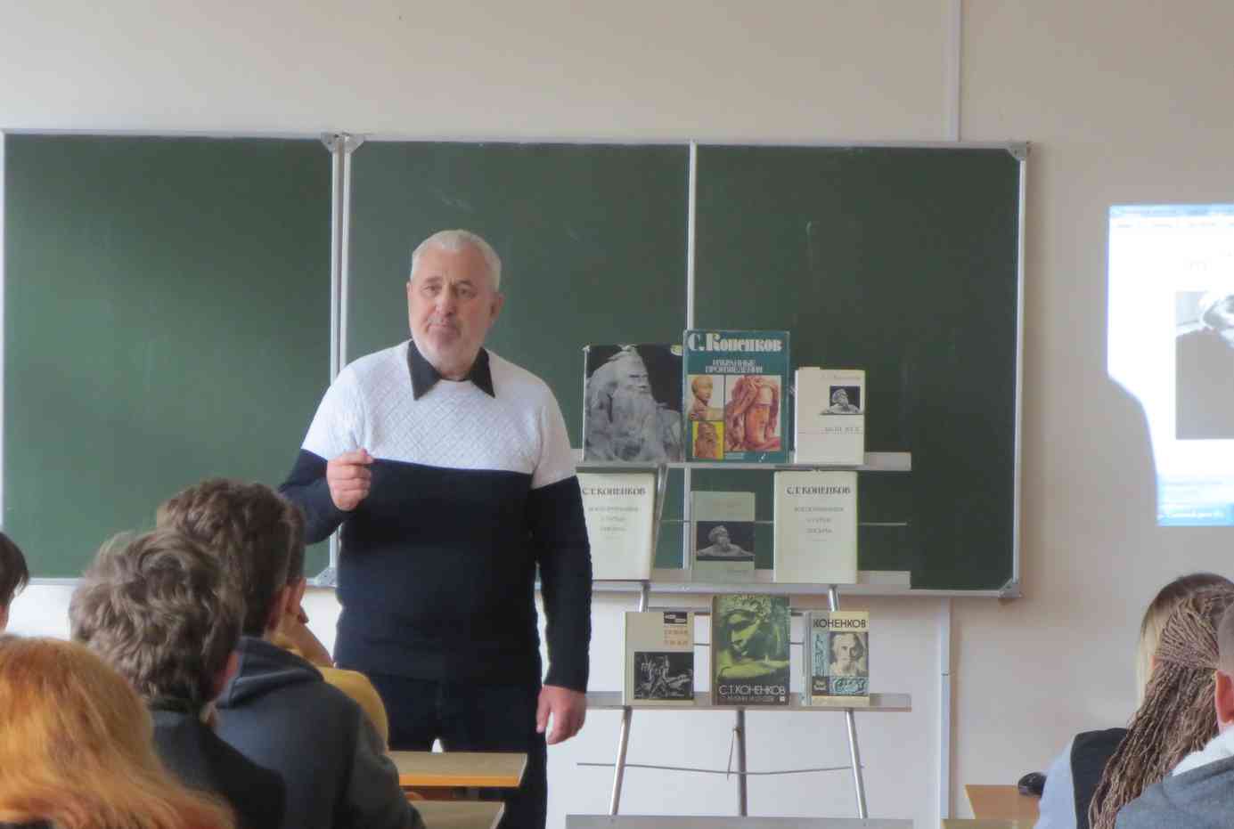 24.10.2019 преподаватели и студенты 1 курса площадки №2 Смоленского строительного колледжа под руководством преподавателей русского языка и литературы Беленко М.Н. и Костылевой Е.М. приняли у себя в гостях выездное заседание Литературной гостиной Смоленского государственного музея-заповедника на тему «С.Т. Конёнков и литературная Смоленщина». Руководитель «Литературной гостиной» в музее - Меньшов Сергей Григорьевич, специалист по экспозиционной и выставочной деятельности отдела передвижных выставок, полковник в отставке, казачий полковник. Сергей Григорьевич вдохновенно рассказал о гениальном смоленском скульпторе Сергее Тимофеевиче. Вниманию учащихся был представлен видеоролик, посвященный скульптору, после просмотра фильма студенты приняли участие в беседе, в ходе которой многие ребята активно отвечали на вопросы о культурном наследии Смоленщины. Стихи Николая Ивановича Рыленкова, посвящённые великому скульптору, прочитали студенты группы ЖКХ-1-19 Морозов Артём и Сидунов Иван. В полной тишине участники встречи слушали пронзительные до слёз стихи смоленских поэтов: Григория Баркова и Любови Сердечной.