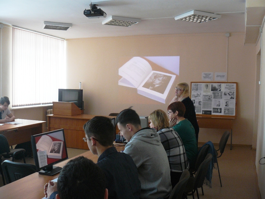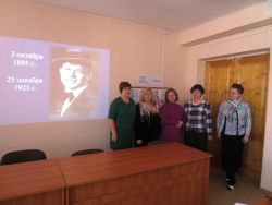 Эмоциональное ощущение от стихотворений усилил показ репродукции картин выдающихся русских художников Шишкина, Левитана. Студенты и гости исполнили песни на слова С.А.Есенина. Настоящим открытием стало декламирование стихотворений С.А.Есенина в исполнении Кострова Александра («Письмо к матери», «Письмо к женщине») на русском языке и отрывков из стихотворений на английском языке Старовойтовым Кириллом и Клещёвой Дарьей. Обучающимися был оформлен стенд о жизни и творчестве С.А.Есенина.
