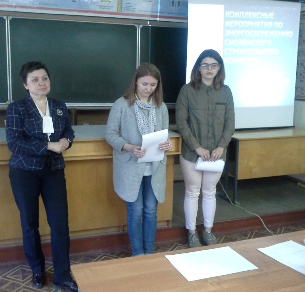 20 апреля 2017 г. на базе региональной инновационной площадки ОГБПОУ «Смоленский строительный колледж» преподавателями общепрофессионального цикла дисциплин Т.А.Нестеровой, Л.Н.Носенко - был проведен мастер-класс, в рамках форсайт-проекта на тему: «От энегоаудита к энергетической эффективности потребления и использования ресурсов в строительстве», среди слушателей курсов повышения квалификации ГАО ДПО СОИРО.