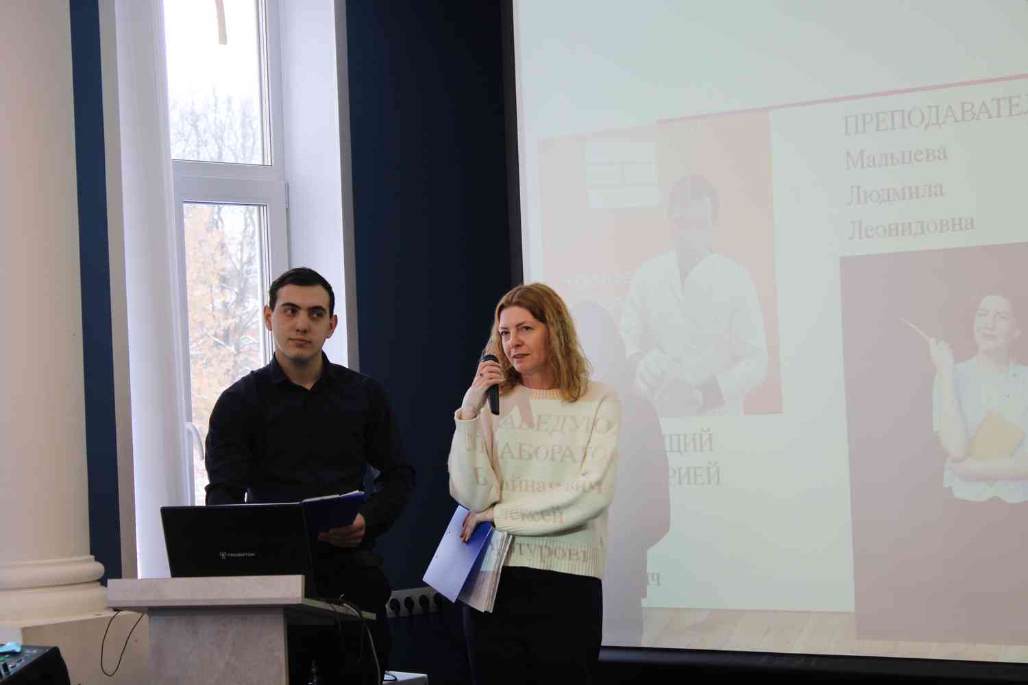 Алексей Артурович Байнарович и Людмила Леонидовна Мальцева поделились опытом подготовки исследовательских проектов на базе мастерской «Материаловедения и испытания материалов».