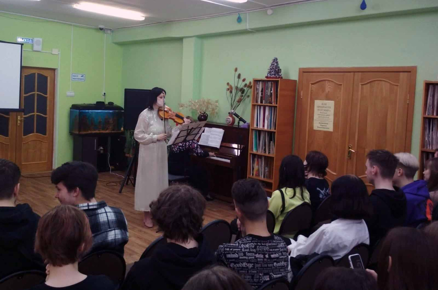 Сотрудники центральной библиотеки имени Н.С. Клестова- Ангарского, к празднованию, 30 апреля, Международного дня джазовой музыки, организовали и пригласили студентов строительного колледжа на концерт джазовой музыки. Вокальные произведения, игра на музыкальных инструментах- флейта и скрипка, и конечно произведения в живом исполнении- программа встречи. Ведущий рассказала о создании джаза, об особенностях. Исполнителями были студенты Смоленских учебных заведений- института искусств и музыкального училища. Благодарим организаторов и участников концерта за подаренные положительные эмоции и возможность окунуться в чудесный мир музыки.