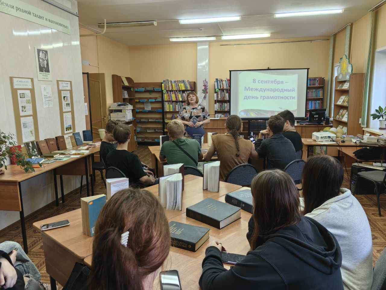 В преддверии праздника студенты групп Т-1-22 и МСП-1-22 вместе с преподавателями В.В. Качалкиной и К.И. Призовой приняли участие в мероприятии, приуроченном ко Дню грамотности. Студентам рассказали об истории обучения грамоте и о важности грамотной речи, также обучающиеся приняли участие в игре на определение их уровня грамотности.