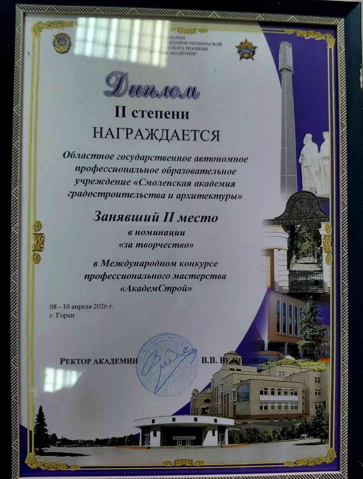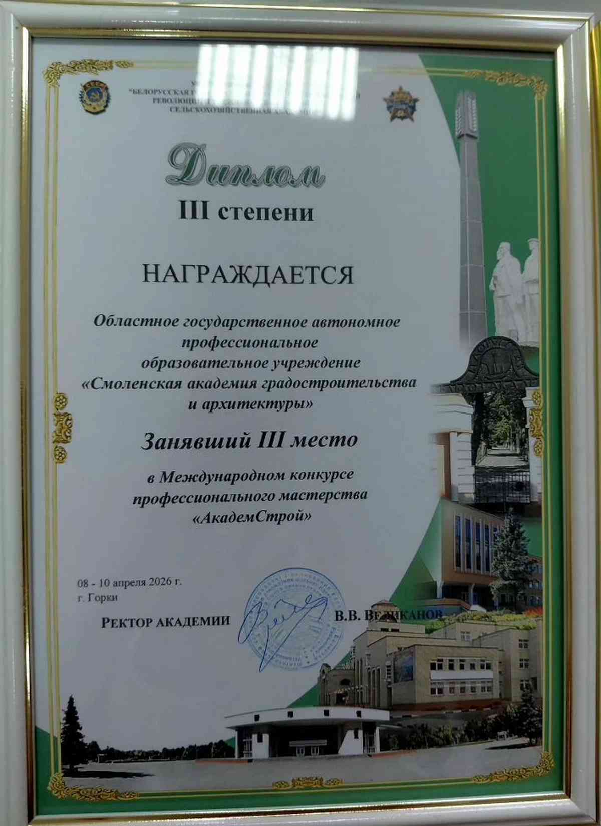 8–10 апреля 2026 года в городе Горки (Республика Беларусь) прошёл Международный конкурс профессионального мастерства «АкадемСтрой-2026».