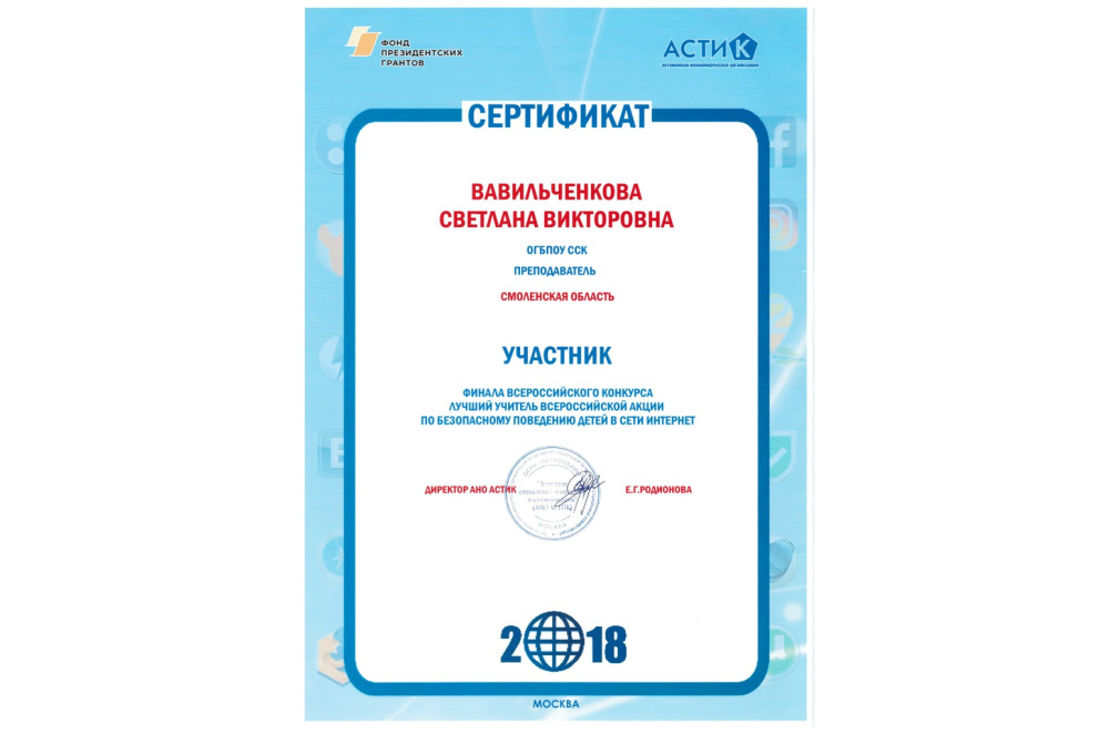 Наш преподаватель Вавильченкова С.В. - участник финала Всероссийской акции по безопасному поведению детей в сети Интернет г. Москва