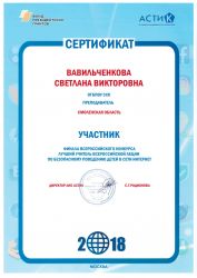 26 ноября 2018 года в Общественной палате РФ в рамках Всероссийского проекта «Сайты, которые выбирают дети», прошла торжественная церемония награждения победителей Всероссийского конкурса «Лучший специалист Всероссийской акции по безопасному поведению детей в сети Интернет».