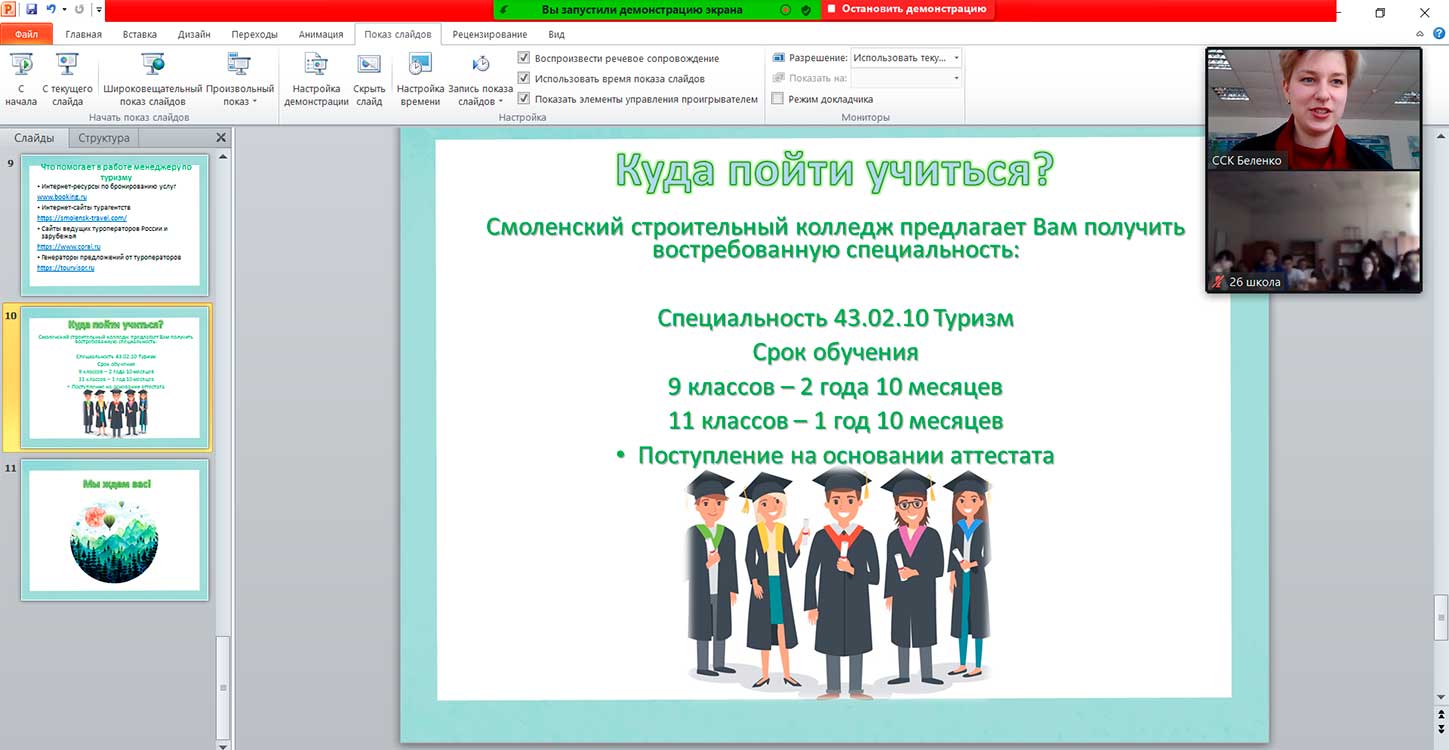 7 апреля в рамках региональной программы «Неделя профориентации» преподавателем Смоленского строительного колледжа Беленко М.Н. была проведена профпроба "Подбор тура по заказу клиента", в которой приняли участие учащиеся школы №26.