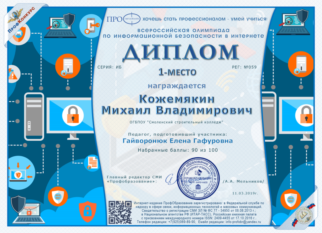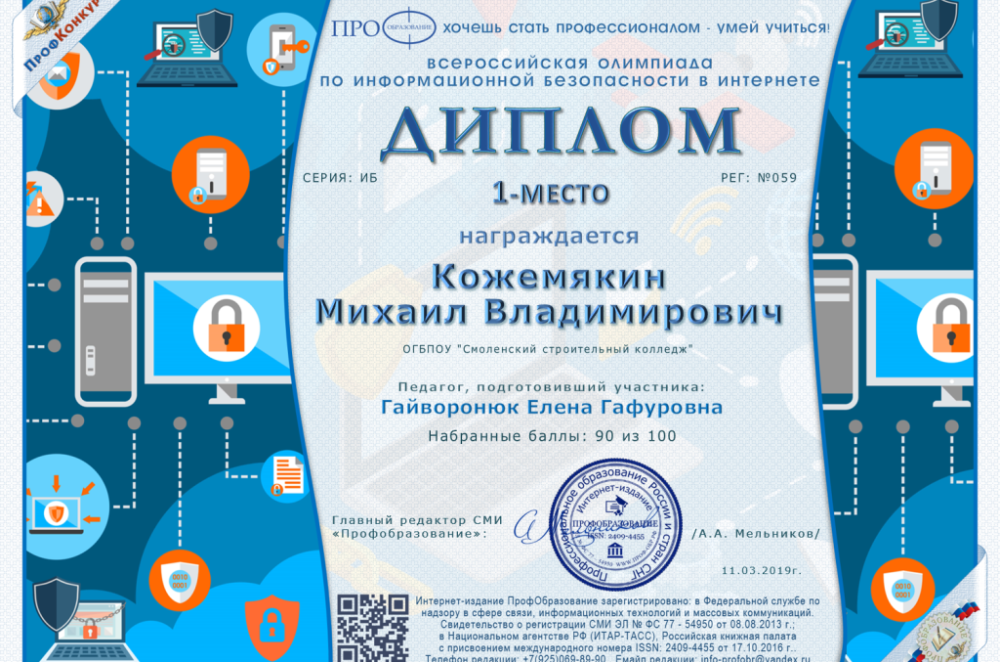 11.03.2019 в учебном корпусе №2 ОГБПОУ "Смоленский строительный колледж" прошла дистанционная ВСЕРОССИЙСКАЯ ОЛИМПИАДА "ИНФОРМАЦИОННАЯ БЕЗОПАСНОСТЬ В ИНТЕРНЕТЕ".