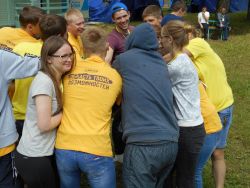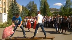 14 сентября 2016 года на территории нашего колледжа прошел один из этапов посвящения в студенты 2016 - RUSSIANFEST! Группы первокурсников преобразились в героев русских народных сказок и былин. Огромное количество ярких красных щёк, платков, цветов и даже бус из сушек - это всё наш праздник. Стёпина Анастасия и Кузина Олеся были ведущими данного мероприятия и своими яркими и красочными играми и забавами, такими как бой подушками, игра в ручеек, подняли настроение не только нашим первокурсникам, но и всем студентам колледжа.Да что там колледжа - всех прохожих! Самым ярким конкурсом было перетягивание каната. Ребята поддерживали не только СВОЮ группу, но и всех других первокурсников. Можем сказать одно - если вы пропустили наш RUSSIANFEST, то мы вам сочувствуем. Потому что это было весело, увлекательно, завораживающе и по-настоящему, "по-стройковски", горячо!