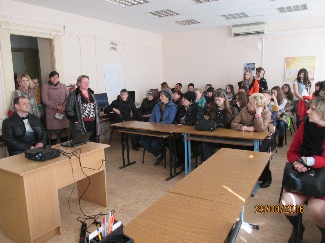 Присутствующих гостей колледжа встречали: Шурбина Кристина, группа СУ-3-14, Макеева Ирина, группа А-1-13, Николаенков Александр, группа СП-1-12. В актовом зале присутствующим был показан информационный фильм о колледже. Отвечали на интересующие вопросы присутствующих касающиеся поступления в колледж, имеющихся специальностей, поступления на платной основе, дальнейшего трудоустройства, социальные педагоги: Лебедева Елена Константиновна (ответственный секретарь приемной комиссии) и Жукова Елена Анатольевна.