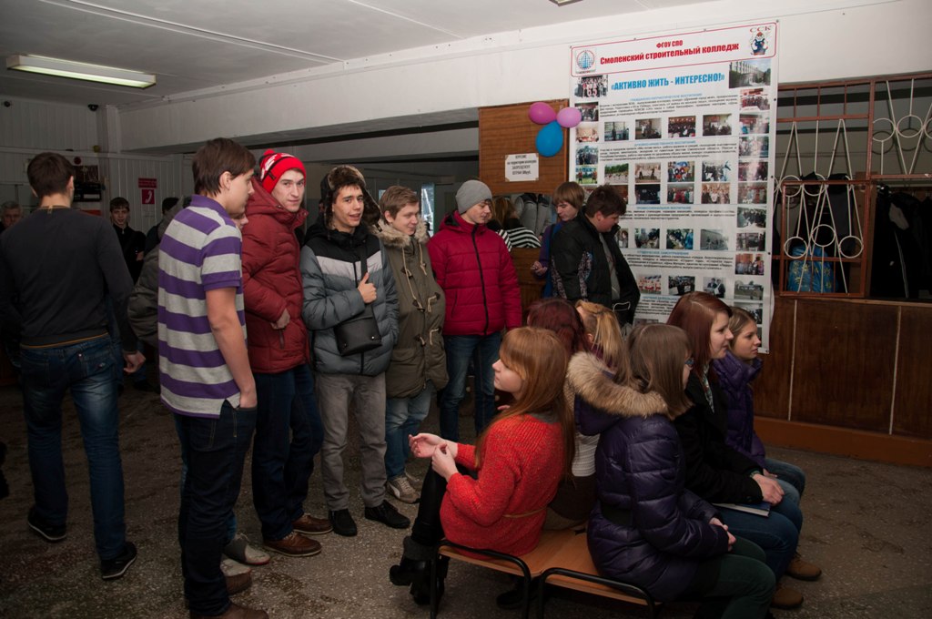 С 5.02.2013 по 8.02.2013 года в ОГБОУ СПО «Смоленский строительный колледж» проходила Неделя открытых дверей, организованная профориентационной службой колледжа (рук. Зотина А.Н.) Целью данного проекта стала информационная поддержка школьников по проблеме профессионального самоопределения. Гостями колледжа стали учащиеся Промышленного УПК и старшеклассники МБОУ СОШ №25 г. Смоленска. Цикловые комиссии специальных дисциплин и преподаватели Денисова Н.П., Константинова Н.М представили ребятам выставку студенческих работ. Школьники смогли познакомиться с курсовыми проектами студентов-строителей по дисциплинам «Промышленная архитектура» и «Технологии строительного производства». Особый интерес вызвали работы студентов-архитекторов, представленные в графической технике, в живописной, а также макетами зданий и сооружений.