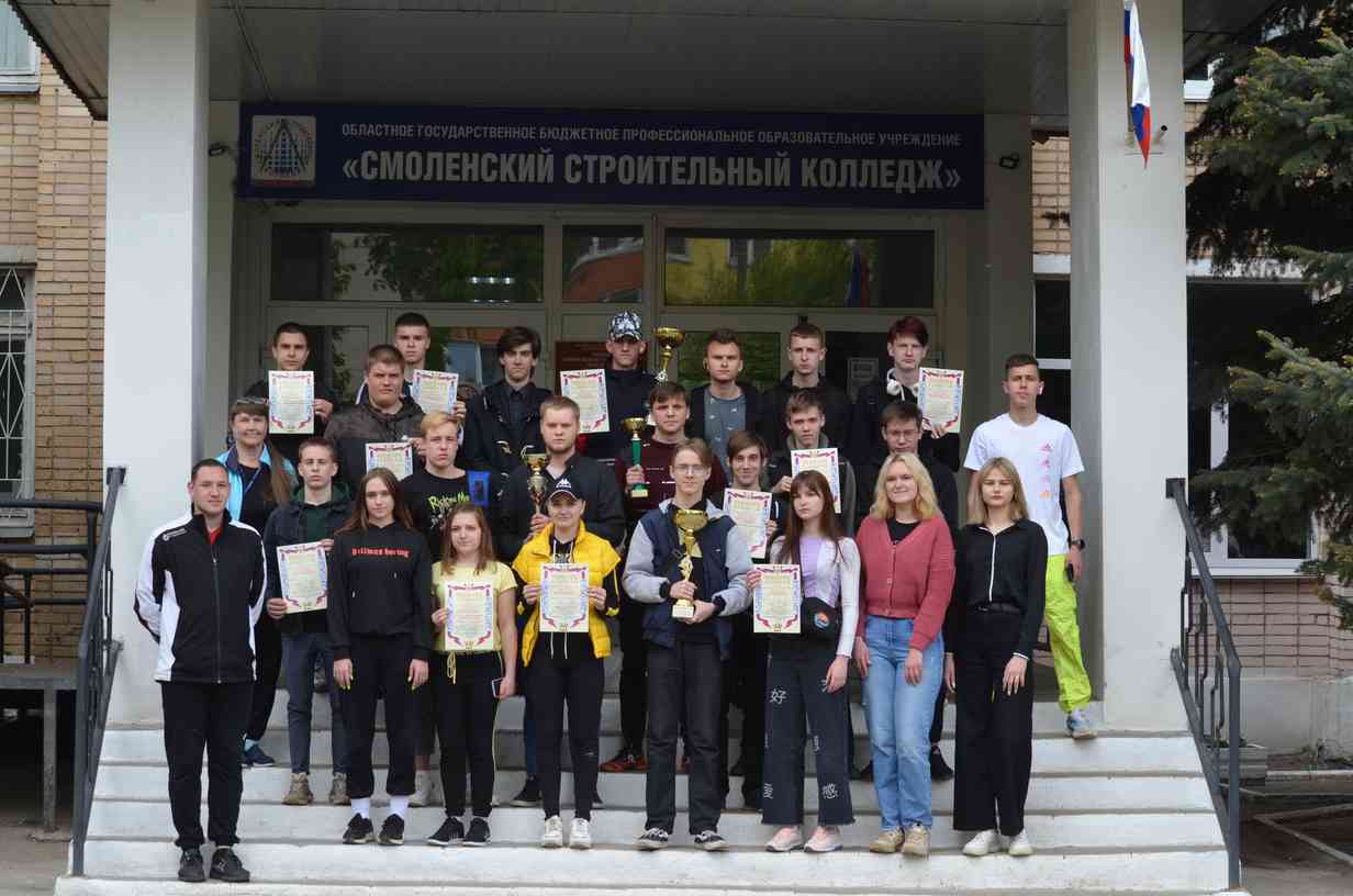 27 мая 2022 года в Администрации города Смоленска прошло награждение призеров XXX Спартакиады обучающихся профессиональных образовательных учреждений города. Наш колледж стал Победителем Спартакиады среди мужских команд! В течение учебного года прошли соревнования по таким видам спорта как: легкоатлетический кросс, настольный теннис, гиревой спорт, волейбол, шахматы, лыжные гонки, баскетбол, футбол, легкая атлетика, многоборье ГТО. Поздравляем всех ребят с победой, а также руководителя физического воспитания Н.Л. Прудникову, преподавателей Н.Н. Кандалову, С.Н. Желтова, А.А. Ласоцкого и М.В. Нижегородцеву, принявших участие в подготовке команд!