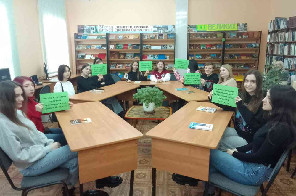 Студенты групп Т-1-22 и Т-1-20 под руководством преподавателя Е.М. Бочкарёвой посетили правовое занятие, которое прошло в библиотеке №12 г. Смоленска. С участниками занятия говорили об уголовной ответственности за употребление и распространение наркотиков, разобрали психологические, социальные, медицинские аспекты проблемы наркомании. Ребята высказали свои предположения по поводу того, что толкает молодёжь становится зависимыми от наркотиков. Поговорили о последствиях приёма наркотиков для здоровья человека. Студенты узнали про методы борьбы с наркоманией и незаконным оборотом наркотических средств. Присутствующие познакомились с литературой на данную тематику, посмотрели видеоролики по профилактике наркомании.