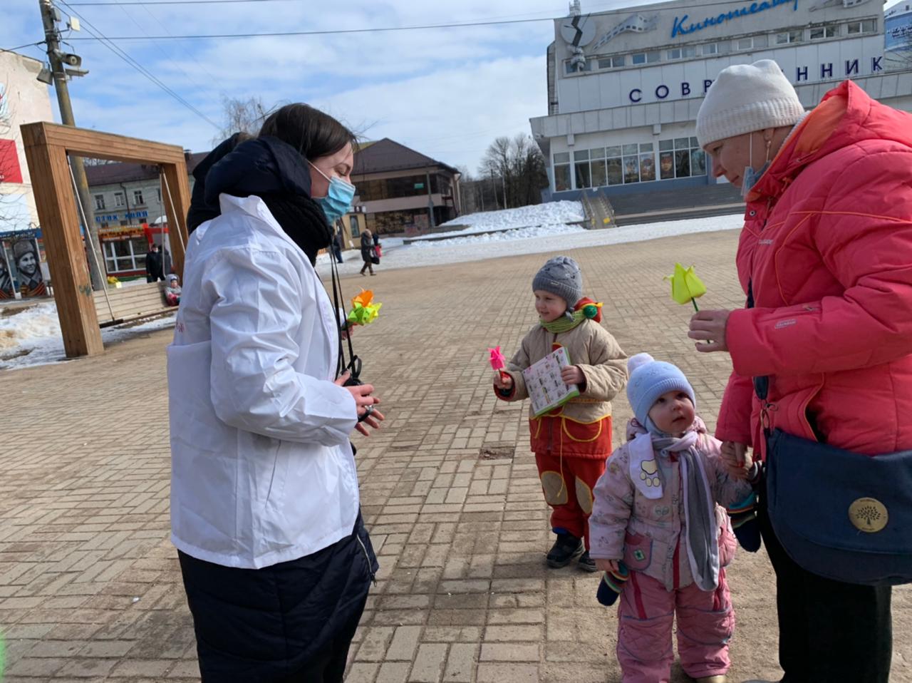5 марта волонтёры отряда «Зодчие» приняли участие в акции «Дарите женщинам цветы».