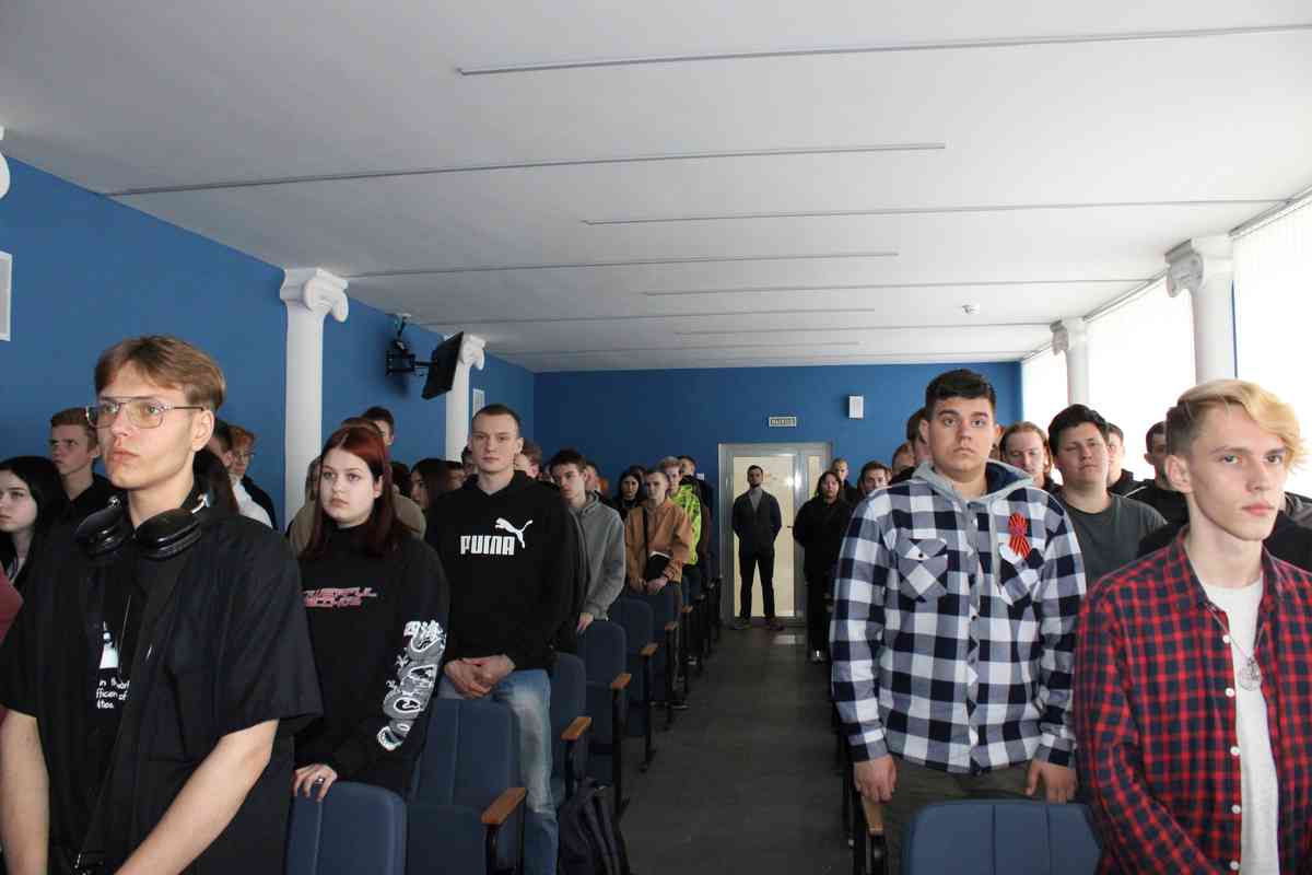 Студенты, преподаватели и сотрудники колледжа минутой молчания почтили память погибших в Великой Отечественной войне. Финальным выступлением стала песня «День Победы», которую подпевал весь зал.