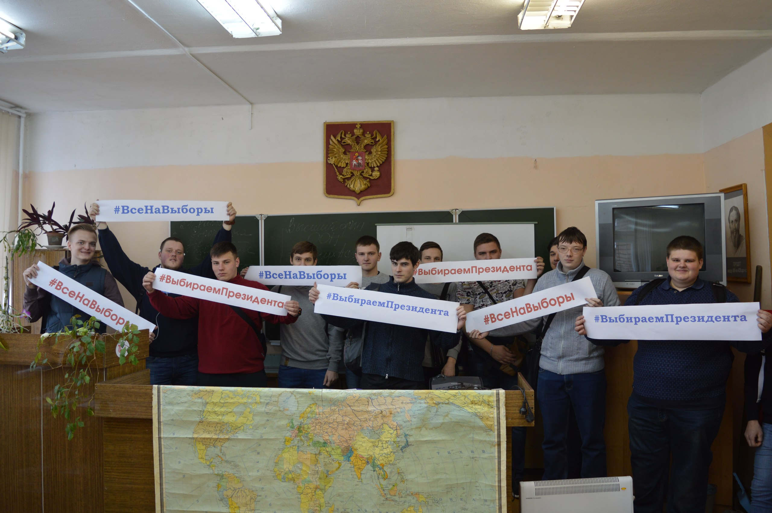 В преддверии выборов Президента России в Смоленском строительном колледже прошла селфи-акция и флешмоб #ВсеНаВыборы #ВыбираемПрезидента. Около 120 совершеннолетних студентов (очного и заочного отделения), преподаватели и сотрудники приняли в ней активное участие. В ходе просветительской акции было рассказано о важности участия в выборах, активной гражданской позиции.