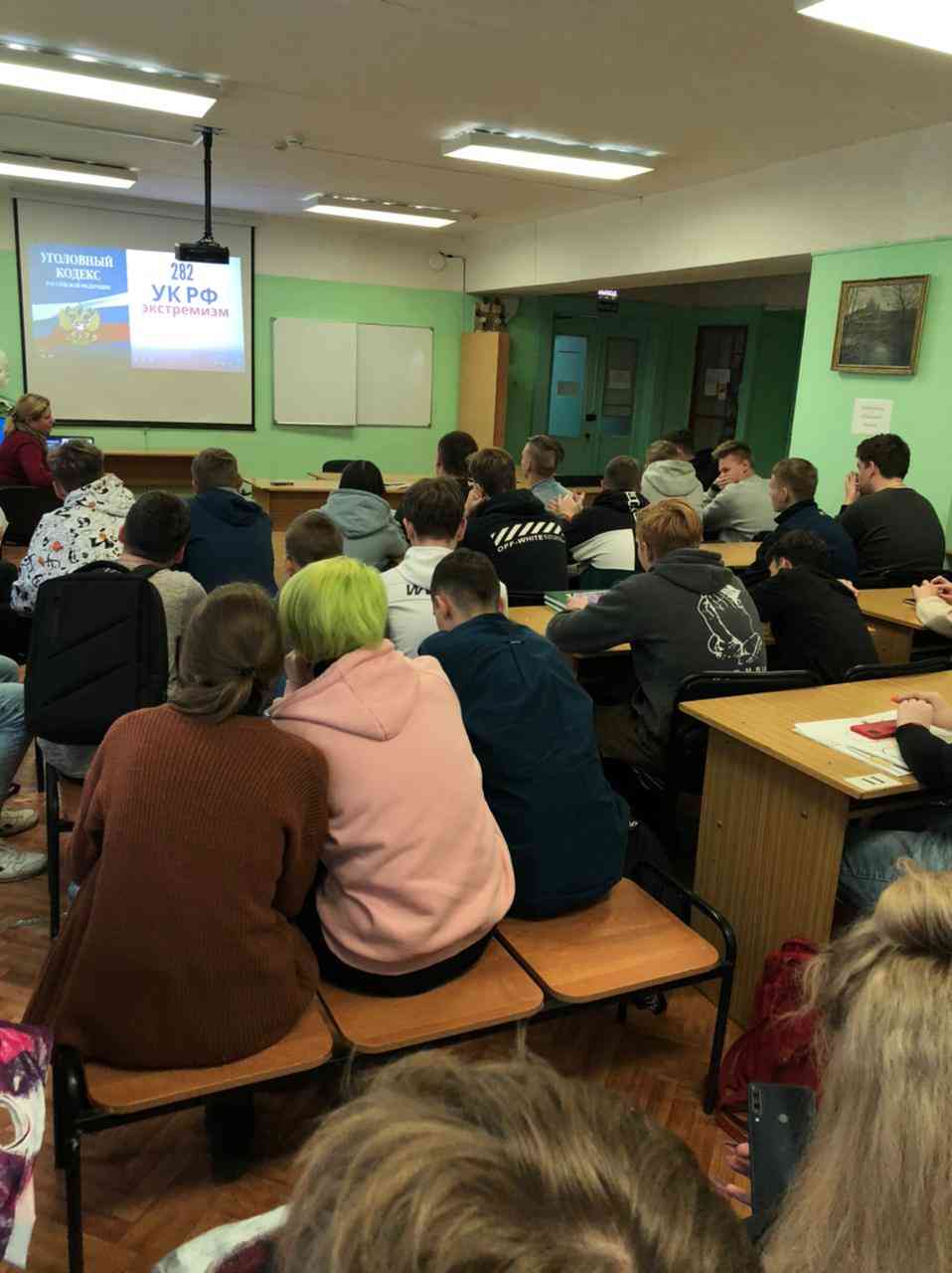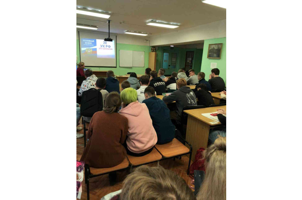 С 15.10 по 22.10 в Смоленском строительном колледже в группах 1 и 2 курса прошли классные часы, беседы и лектории по предупреждению экстремистских проявлений среди несовершеннолетних обучающихся.