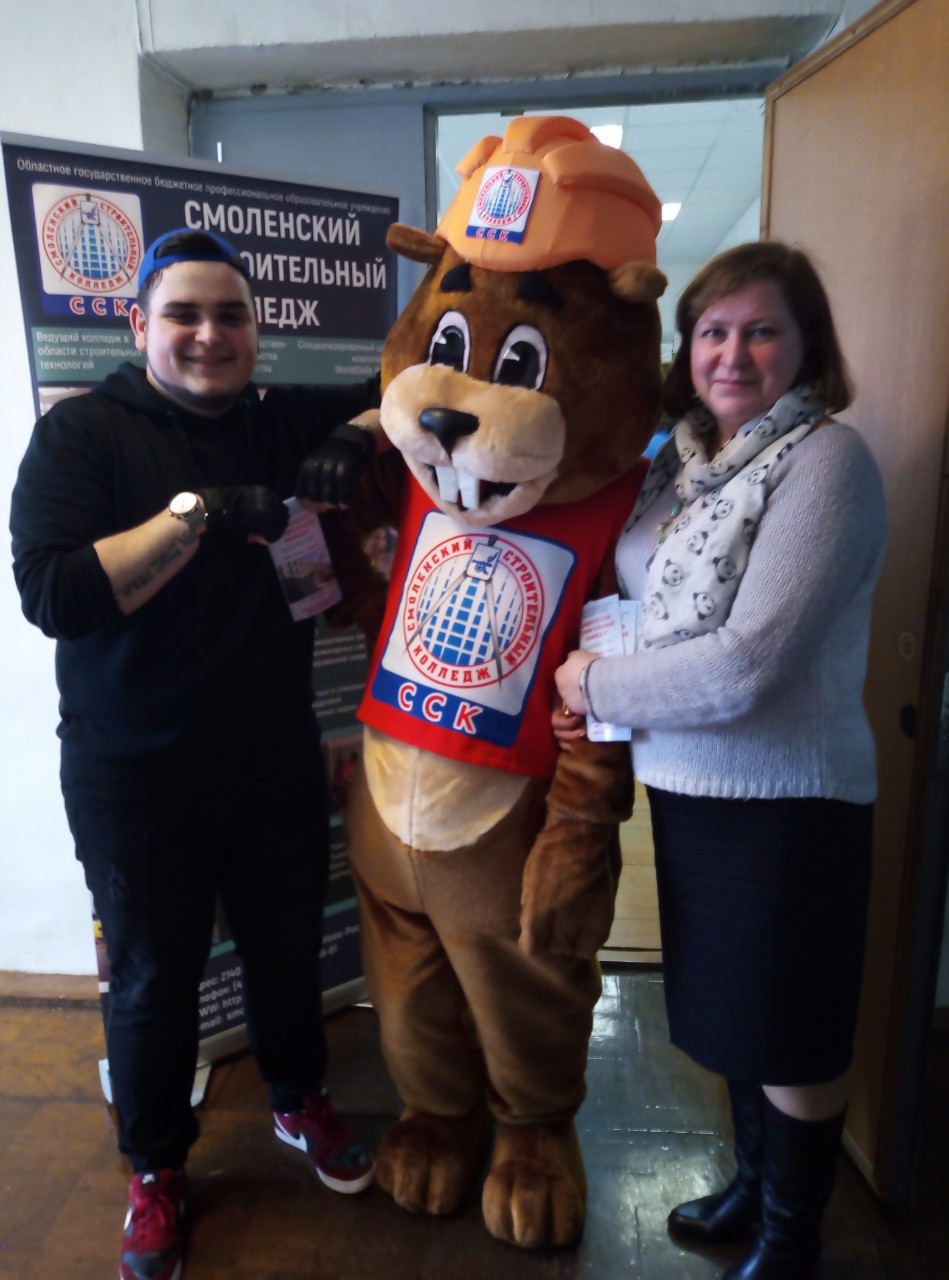 Где бы мы ни выступали, мы не только знакомили школьников, их родителей и педагогов с нашими специальностями, профессиями и условиями поступления, мы очень старались заразить абитуриентов позитивной атмосферой нашего колледжа и никому не отказывали в возможности сфотографироваться с нашим талисманом - бобром-строителем!