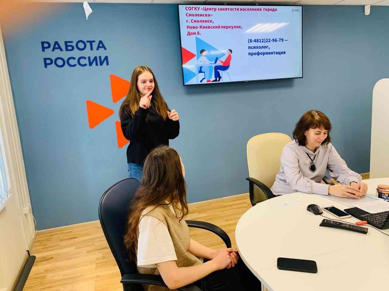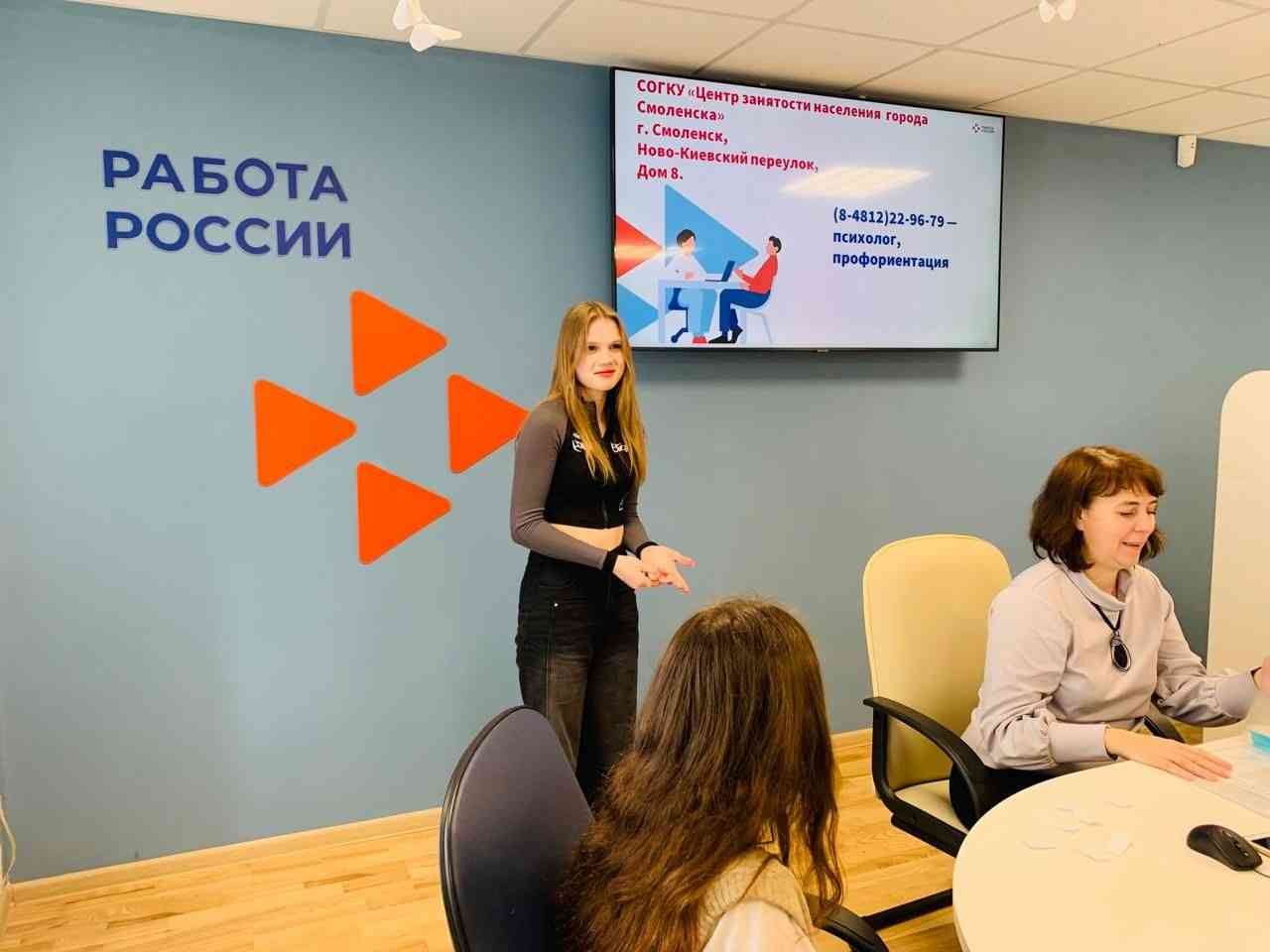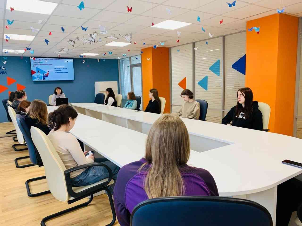 Студенты познакомились с возможностями сервиса «Работа России», узнали о количестве доступных вакансий. В ходе тренинга участники поиграли в увлекательную профориентационную игру. Все задания были успешно выполнены.