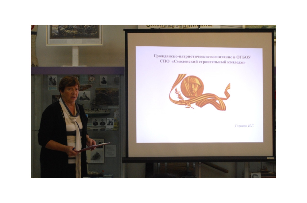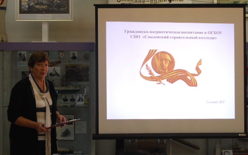 14 сентября в Молодёжном центре-музее имени адмирала Нахимова прошёл семинар для руководителей патриотических детских и молодёжных общественных объединений г. Смоленска и муниципальных образований региона. От Смоленского строительного колледжа в семинаре принимала участие начальник отдела воспитательной и культурно-массовой работы И.Г. Голушко.