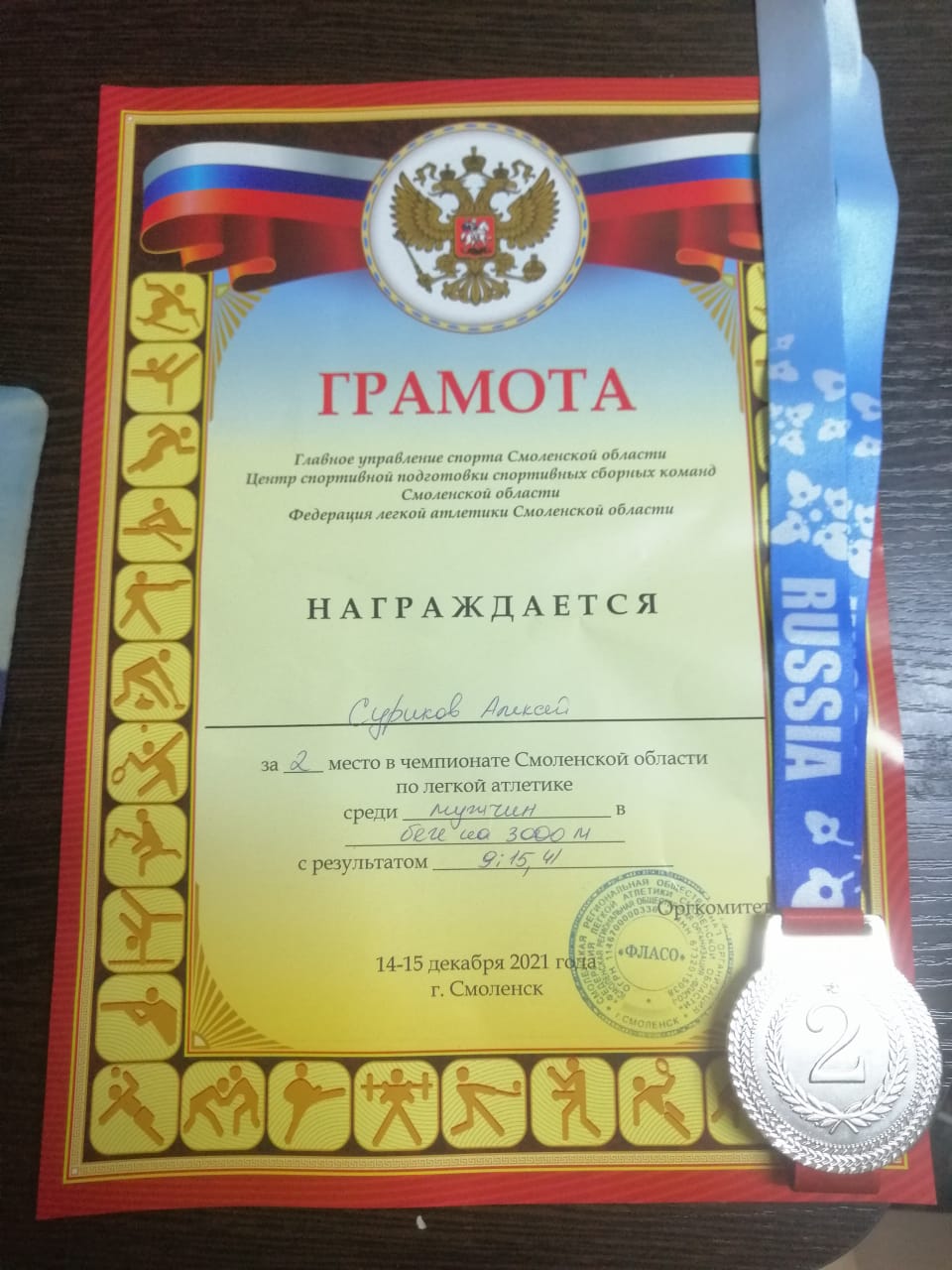 14-15 декабря 2021 года в Легкоатлетическом манеже Смоленского государственного университета спорта прошли региональные соревнования по легкой атлетике. Студент нашего колледжа Суриков Алексей (СУ-2-18) на дистанции 3000 метров занял 2 место! Поздравляем Алексея с отличным выступлением и пожелаем ему дальнейших успехов!
