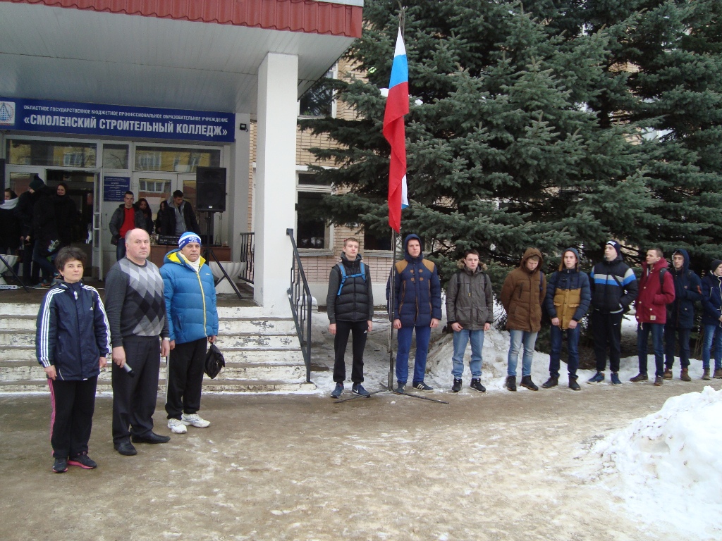 20 февраля 2017 г. в колледже прошел военно-спортивный праздник, посвященный Дню защитника Отечества, организованный преподавателями физического воспитания и БЖ: Н.Н. Кандаловой, С.А. Калининым, С.Н. Желтовым и А.О. Литвишко. Среди групп первых курсов прошли соревнования по стрельбе из пневматической винтовки, подтягиванию, отжиманию, подъему гири, перетягиванию каната. Призовые места заняли группы: I место – СД-1-16, II место – СУ-1-16, III место – М-1-16.